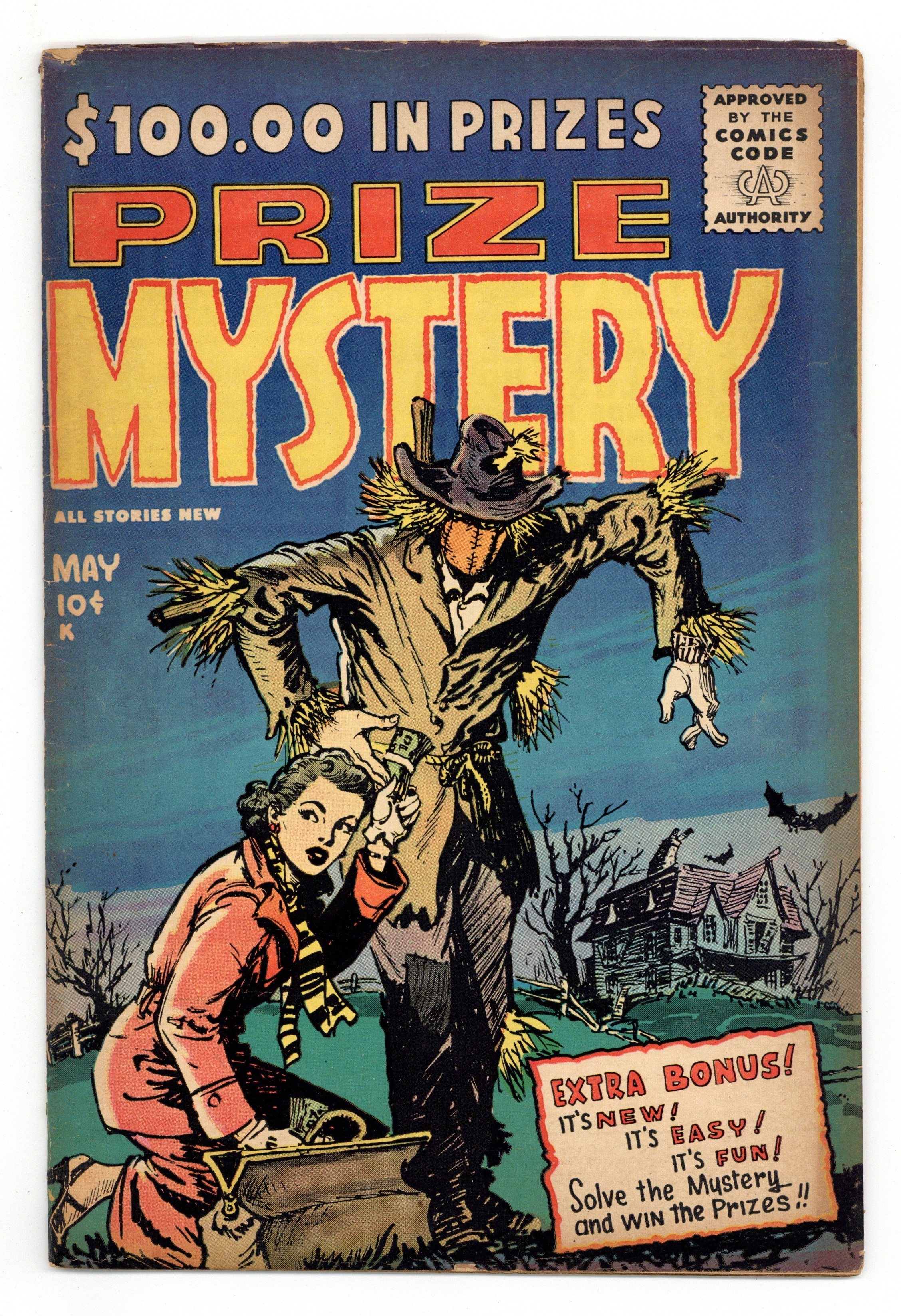 Stories and art by Eugene E. Hughes and others. Fanciful mystery stories with an added cash incentive for the lucky 1950s reader. Inmates attempt a daring escape from an island prison that no prisoner has ever escaped. A two-page mystery involving murder at a circus offers a cash prize to the reader who can figure it out - the "prize" of the magazine's title. High-ranking US military officials learn a scientist has invented a time machine, but brings bad tidings from the future. Escape; Lie Detector!; The Circus Caper; Marked Weapon!; Hold Back Time; Pardon! 32 pages, Full Color. Cover price $0.10.