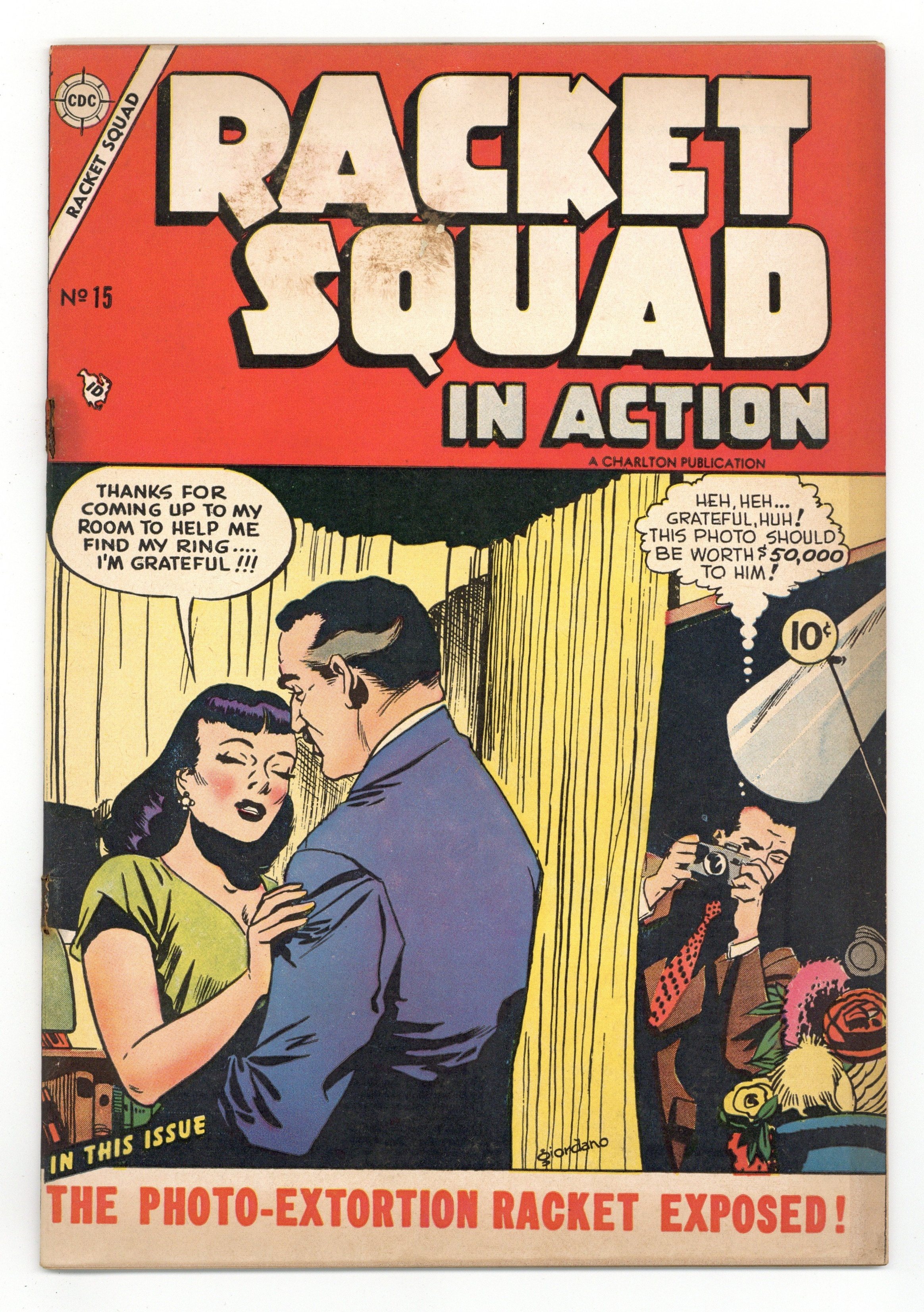 Cover by Dick Giordano. Stories and art by Carl Memling, Art Cappello and Dick Giordano. Pre-Code crime comics from Charlton, focusing on swindlers and con games. Gangsters try to pass stolen money with a phony counterfeiting racket, a sort of crime within a crime. Jerry employs his beautiful girlfriend Dot in a scheme to catch ordinary men in compromising photographs. Widow Arlene falls for a phony "lonely hearts" club. Plus advice to the reader on avoiding con artists. Look Them Over; Limited Edition; Blackmail; Double Trouble; The Two Buck Hype; Photo Finish; Beware of the Swami; No Bargain; The Lonely Hearts Racket; The Old Shell Game. 32 pages, Full Color. Cover price $0.10.