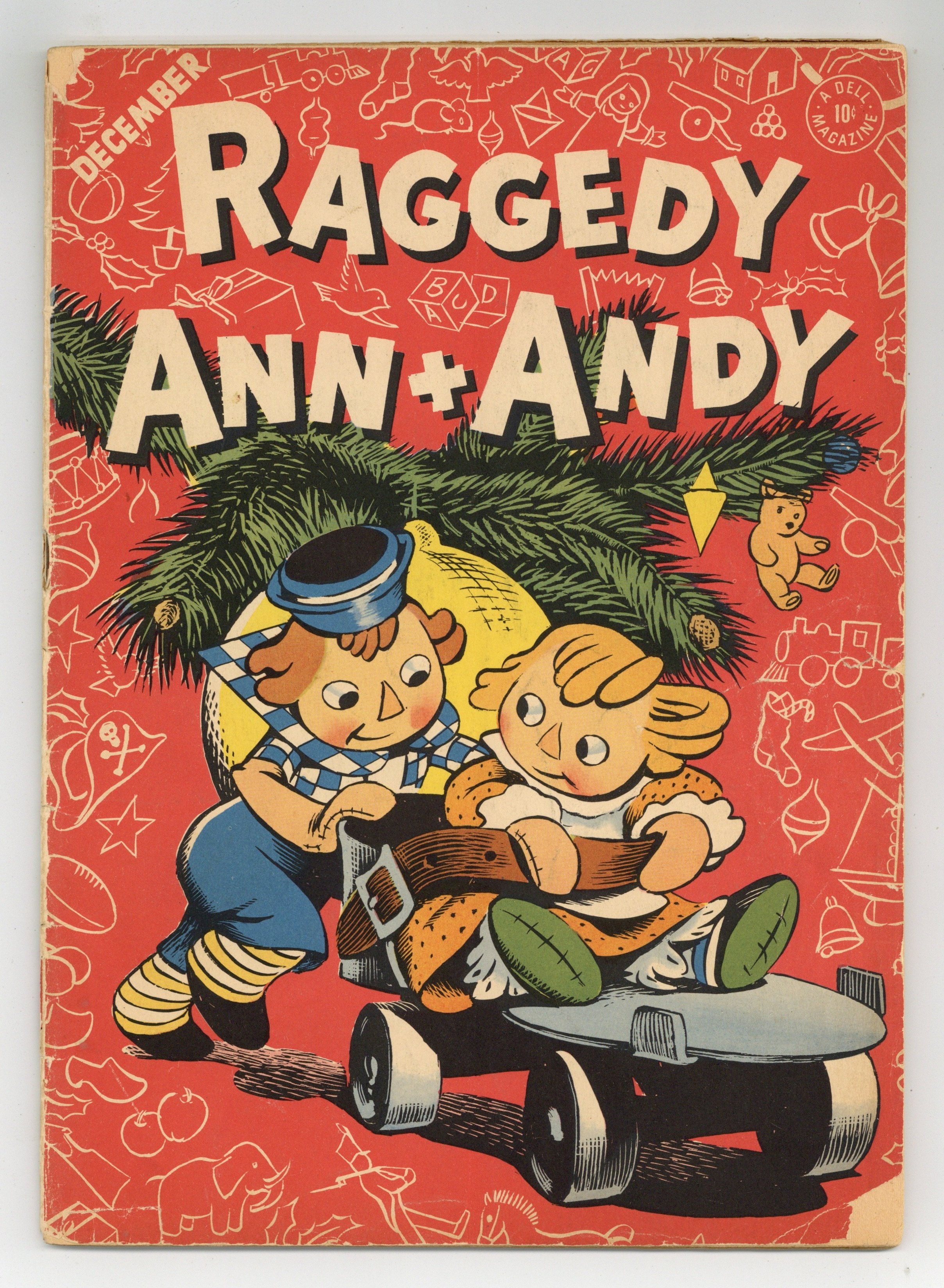 Cover by George Kerr. Stories and art by Walt Kelly, George Kerr (credited as Johnny Gruelle), W.J. Enright, Bud Haley, L. Bing and Dan Noonan. Johnny Gruelle's famous doll characters have adventures and learn lessons, featuring early art from Walt Kelly. Legendary Pogo artist Walt Kelly adapts Mother Goose nursery rhymes, including Hark, Hark, the Dogs Do Bark and Marjorie Daw. The penguin Donot Inflate misreads a note in a bottle, and leads Egbert and Tuffy on a sea rescue. Raggedy Ann and Andy rescue Silver King Moth from a fire, and help him find a new home. Plus activity pages and "nonesuch" animals. Raggedy Ann; The Raggedy Way; Egbert Elephant and His Friends; Animal Mother Goose; The Long Nose; Billy and Bonny Bee; My Pony. 48 pages, Full Color. Cover price $0.10.
