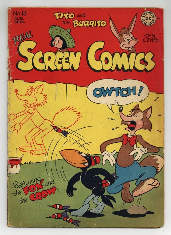 Untitled story, pencils by Bob Wickersham; The Crow is hungry, but his cupboard is bare. Untitled story, pencils by Bob Wickersham; The Fox attempts to end the long-running feud with the Crow (but, of course, to no avail). Untitled Tito and His Burrito story. "A Lesson in Grammar" text story starring Wally Woodchuck. Untitled story; The Crow disguises himself as a canary in hopes of pilfering some bird seed. Untitled story pencils by Bob Wickersham; The Crow is insulted when he learns that the Governor has put a mere 15-cent bounty on crows. 52 pgs., full color. $0.10. Cover price $0.10.