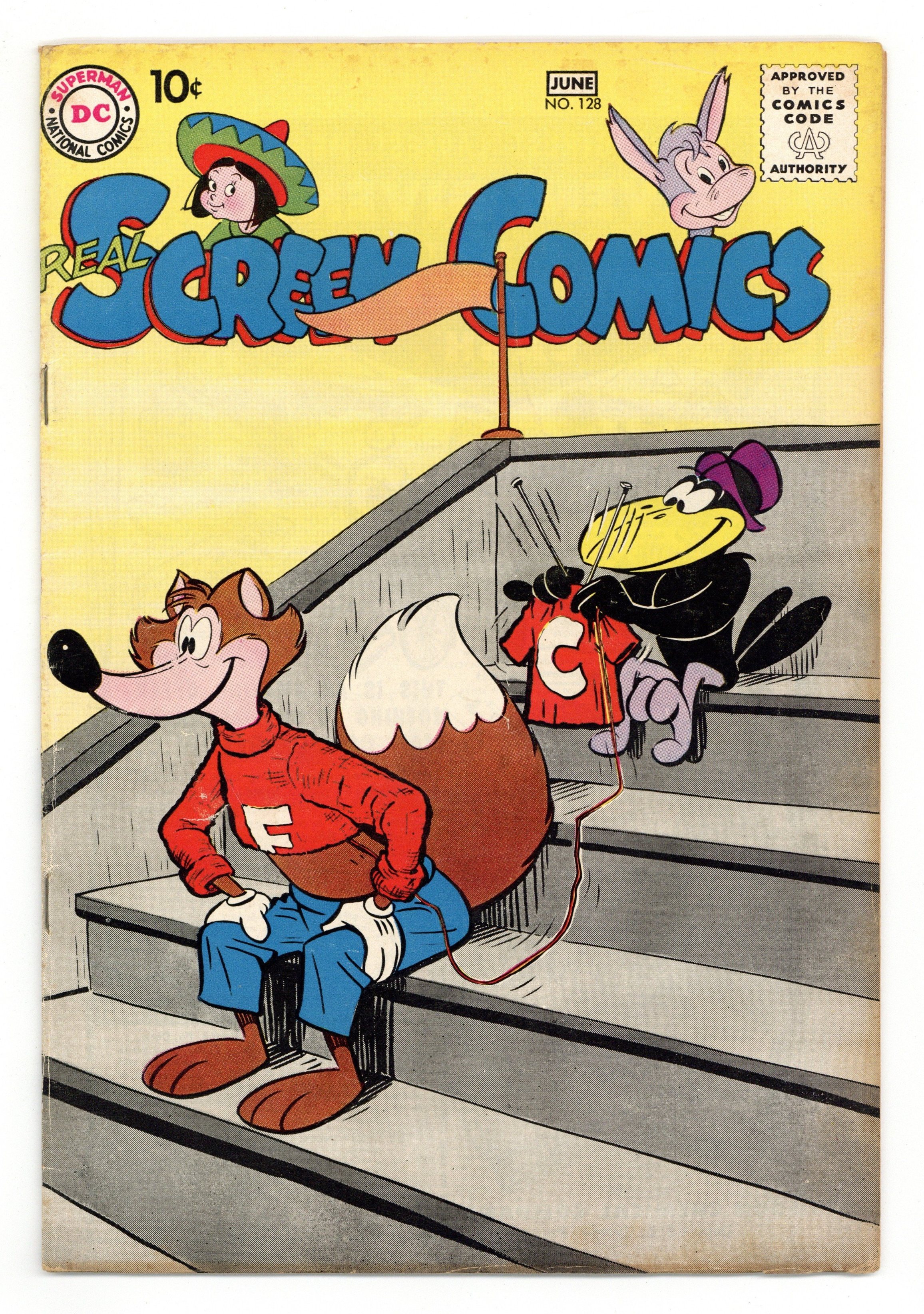 $17.50Cover by James F. Davis. Untitled story, art by James F. Davis; When Fox and Crow have a big blow-up, both decide to try to patch things up with apology dinners; Unfortunately, a banana peel on their path puts a crimp in their plans. Ad for Action Comics #252-The Supergirl from Krypton. Untitled story, art by James F. Davis; Uncle Ramon sends Tito a hula-hoop. Untitled story, art by James F. Davis; Fox tries to go on a picnic without the moochin' Crow. Untitled story, art by James F. Davis; Flip, Flop, and Sam the dog show us why it's not good to play with firecrackers indoors. Untitled story, art by James F. Davis; Crow plays a billfold gag on the Fox one too many times. 36 pgs., full color. $0.10. Cover price $0.10.