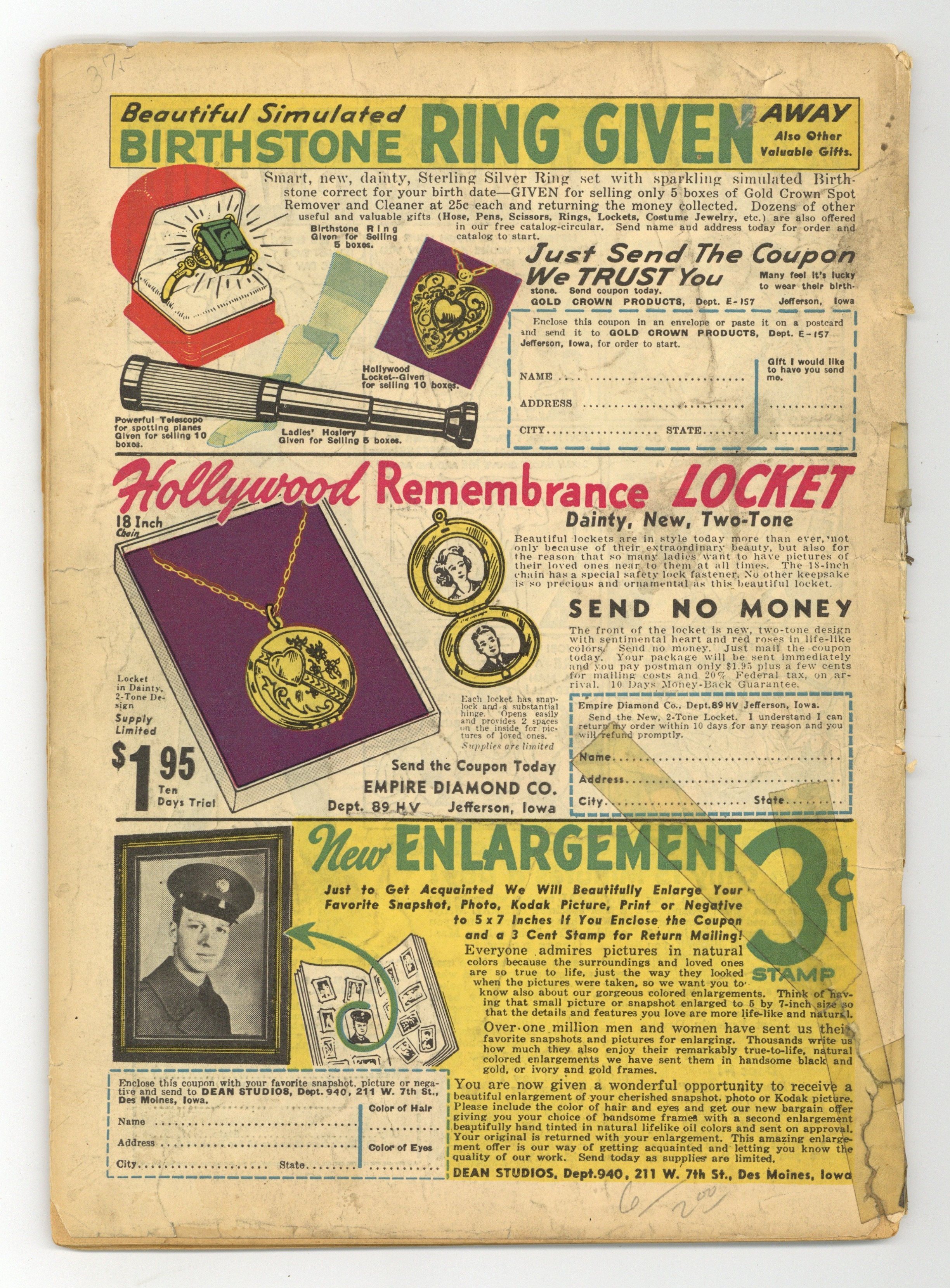 Stories and art by Harry Fisk and Chu F. Hing. Adventure comics from Rural Home Publishing. Teen Dinky Dibbs sets out to become a detective, with help from his mystery-solving parrot Cracker, and soon discovers Nazi saboteurs. When nightclub singer Swifty is being blackmailed, vaudeville comedian Mike dons a comedy mask and becomes The Prankster. Naval commander Lloyd "Fifty Fathoms" Foster battles Nazi destroyers in the Indian Ocean. Jack Bradley; Dinky Dibbs: The Disappearing Dynamite; Prankster; The Other Half; Fifty Fathoms Foster; The Judge and the Jury; Stenchy; Red Riot. 52 pages, Full Color. Cover price $0.10.