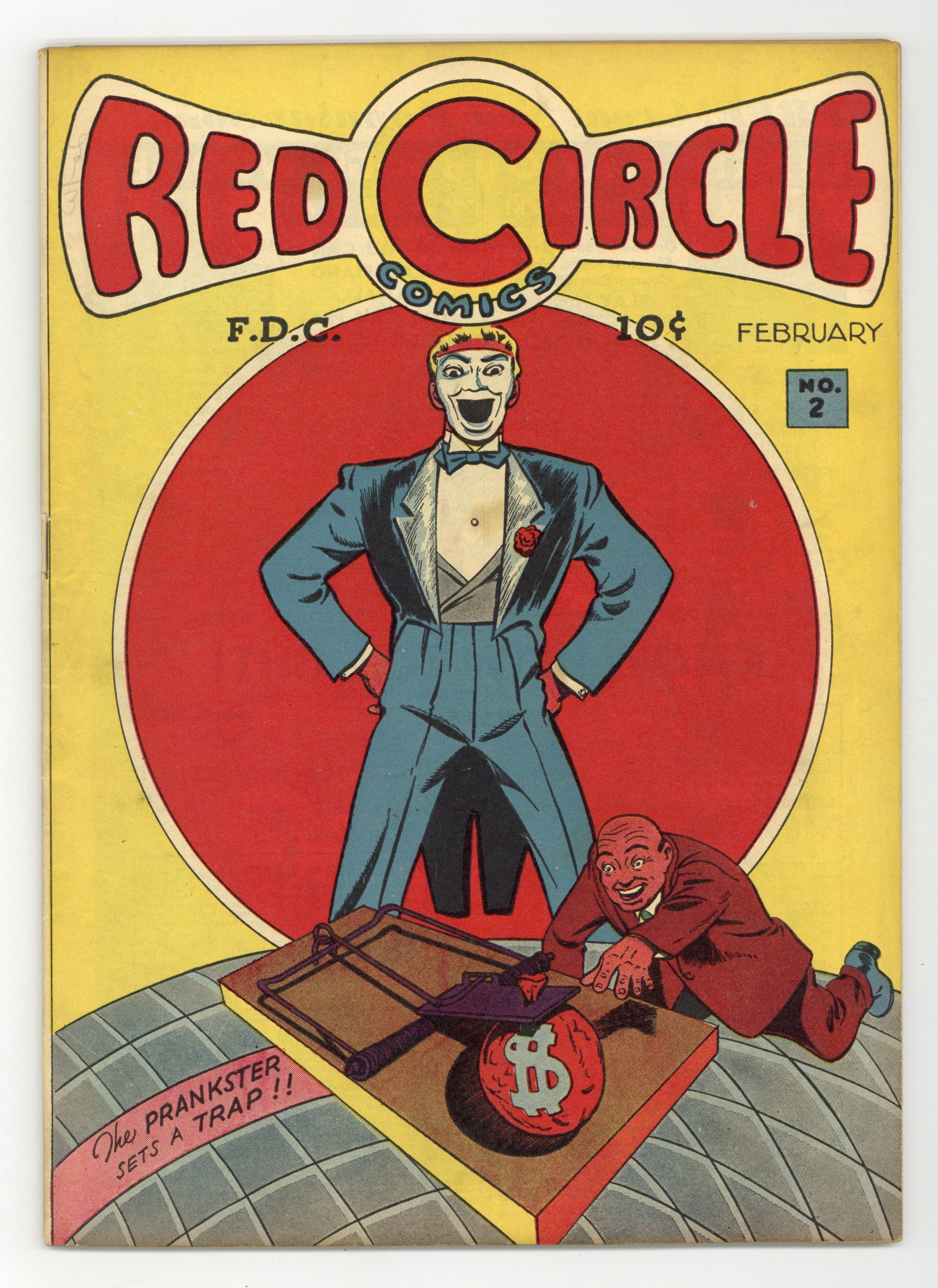 Cover by Leonard Starr. Stories and art by Harry Fisk and Chu F. Hing. Adventure comics from Rural Home Publishing. Teen detective Dinky Dibbs and his parrot sidekick Cracker discover bank robbers hiding out in a mausoleum. When a woman dies after one of his practical jokes, vaudeville comedian Mike suspects there's more to the story, and investigates as The Prankster. After men are murdered in a steam-bath, Jim Lawson becomes the masked crime-fighter known as The Judge to investigate. Wild Way of the Hill Country; Dinky Dibbs, Detective: Death Robs a Bank; The Prankster; Boss of the Alleys; Fifty Fathoms Foster: Three Tickets to Death; The Judge and the Jury: Little Black Book Murder; Chip; Red Riot. 52 pages, Full Color. Cover price $0.10.
