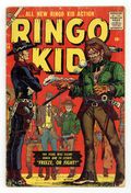 Cover art by Joe Maneely. Untitled story, art by Fred Kida; The Ringo Kid spots two bushwackers who are attempting to shoot at the local marshal who is bringing out his prisoner, a man named Lance from his jailhouse; The Kid is faster at the draw and his superior shooting skills allows him to shoot the guns out of the assassins hands, but they managed to flee the scene before they can be rounded up. "Ranch Hand's Luck" text story, art by Al Williamson. "Duel At Dawn," art by Fred Kida; The Ringo Kid is riding along a mountain pass when he comes across a man hanging on for dear life on the remains of a collapsed rope bridge; With the help of his horse Arab, the Ringo Kid swings down and pulls the man to safety; The old man thanks the Kid for his help and introduces himself as Matt Carmody, the circuit judge for the district. "Calico Pony," art by Fred Kida; The Ringo Kid is in a saloon refilling his canteen when a young boy rushes in asking for help; The Kid tries to calm the boy, when suddenly a man comes bursting in and demands that the boy give up his Calico pon. "The Stranger!", script by Stan Lee, art by Dick Ayers. "Freeze Or Fight," art by Fred Kida; Arriving in the town of Bowstring, the Ringo Kid finds the sheriff and his posse waiting for him; The sheriff tells the Kid that the only way he will allow him into town, with his reputation, is if the Kid agrees to turn over his guns; With no choice, the Ringo Kid agrees and turns over his guns; He is spotted by two men named Lobo and Zack who decide to get a reputation for themselves even though the Ringo Kid does not have any guns on him. 36 pgs., full color. Cover price $0.10.
