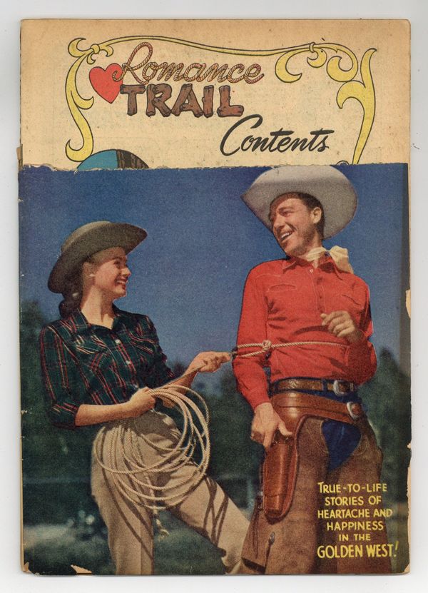 Photo cover. The Fearful Heart! starring Molly Adams, pencils by Alex Toth, inks by Frank Giacoia; Aline is in love with the sheriff, but she can't take that he always is in danger. No Time for Tears. Dearest Enemy. Sundown. Race for Love text story. Saddle Stuntgirl! facts on rodeo stunt girls. Rancho Pancho. Heartbreak Ranch. 52 pgs. $.10. Cover price $0.10.
