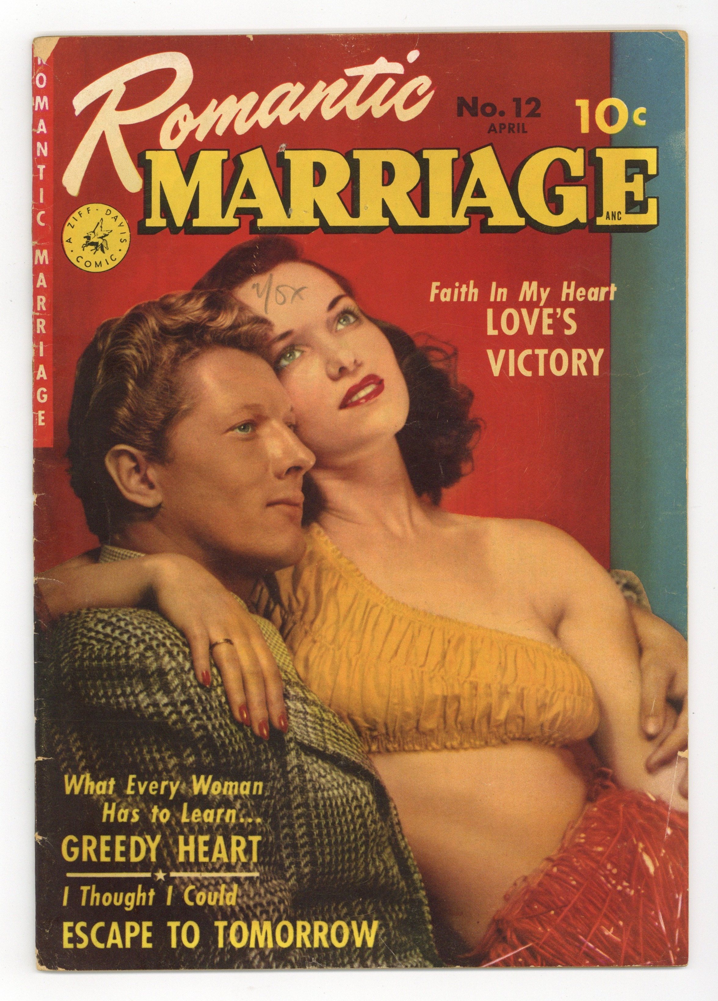 Stories and art by Mike Sekowsky, Marvin Townsend, Sid Greene, John Giunta, Bernard Sachs, and Alice Kirkpatrick. This early romance title from Ziff-Davis focused on the struggles of domestic life. Newlywed Lorraine feels she has to compete with new stepdaughter Patty for her husband's love and attention. Ilene is torn between husband Steve and visiting consultant Phil, who offers to take her away from her suffocating small town. In another story, redheaded Doraine believes wealth and advancement will make her happy, but new husband Steve would rather go fishing. His Other Love; Escape to Tomorrow; Beware of the Stranger!; Love's Victory; Cooking with Gas; Greedy Heart; Marital Mix-Ups. 32 pages, Full Color. Cover price $0.10.