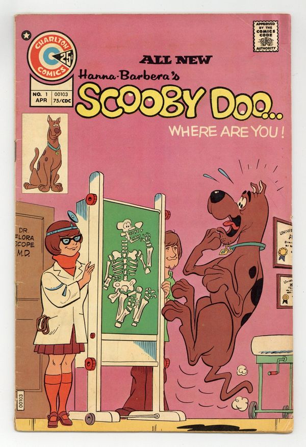 "Come Stay Awhile... Like Forever!" Scooby and his friends stay overnight at a creepy castle operated by Dr. Frankenstone! During the night Shaggy disappears; and Fred, Daphne, Velma, and Scooby have to find him before his life energy is transferred into Frankenstone's monster! "Who's Laughing in the Fun House?" Shaggy takes a job as a night watchman at an amusement park! But three secret spies cause mayhem for Shaggy and Scooby! "The Bobcat's Flying Lesson" Two-page text story (with illustrations) by Michael J. Pellowski. "Custard's Next-to-Last Stand" The Mystery Machine wanders into the middle of battle between soldiers and indians! And when Fred, Daphne, and Velma get captured; Shaggy and Scooby must lead the charge to free them! (Note: Script and art credits are not listed; however, Bill Williams is presumed to be the cover and interior artist. Full color.) 32 pages. Cover price $0.25.