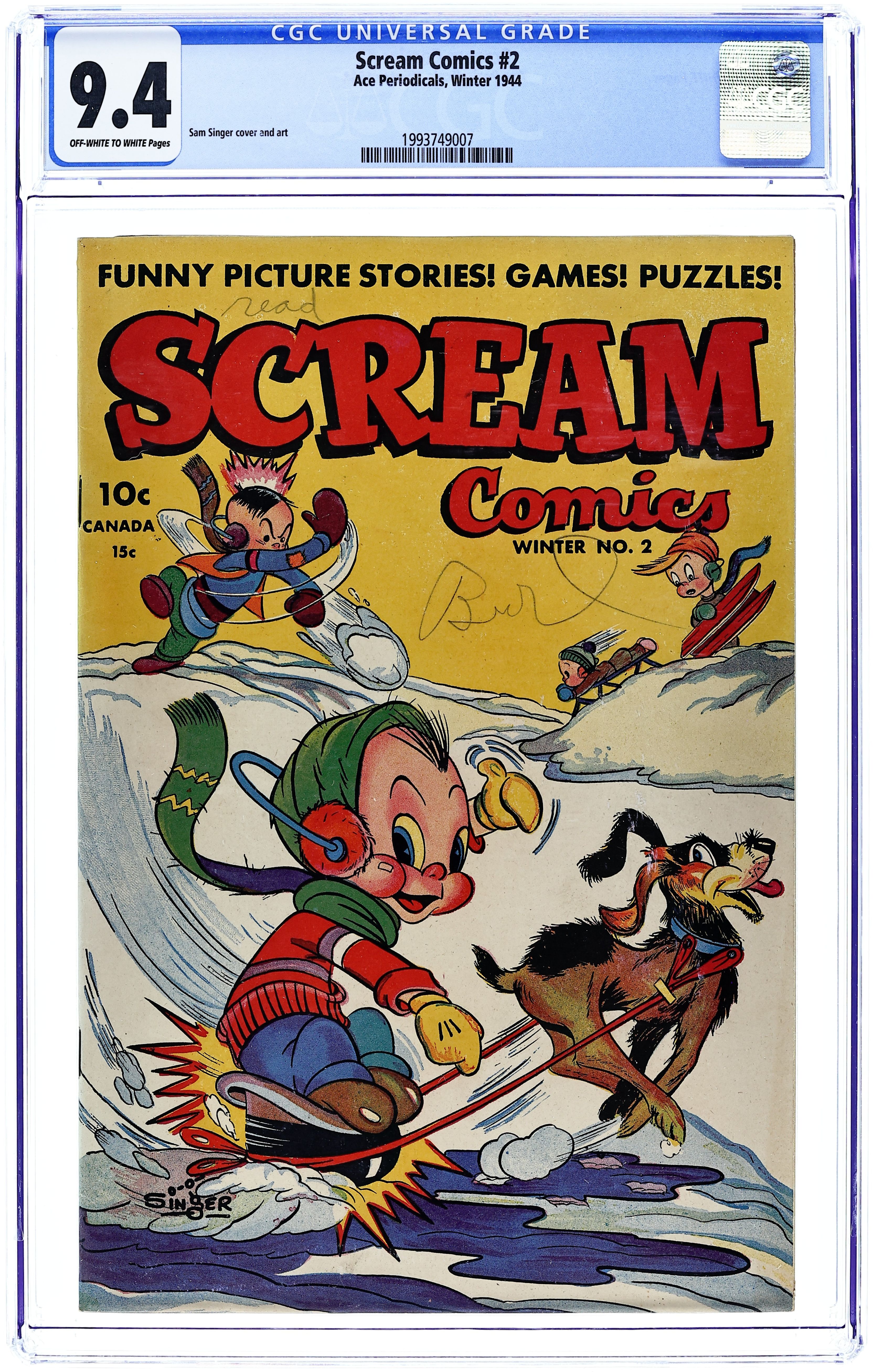 Sam Singer cover. Contains funny children's stories. In order of appearance: "Spike McCoy, The Kid"; "Li'l Dan'l Boone" and "Andy" art by Sam Singer; "The Eyes Have It"; "Doc Watson"; "Pencil Croquet"; "Whiz Kids, Nip and Tuck"; "Scream's Song of the Season"; "Crossword and Maze"; and "Barnacle Bill". "Picnic Time in Scream-Town" text story by Joe Blair. 52 pages. Full color. Cover price $0.10.