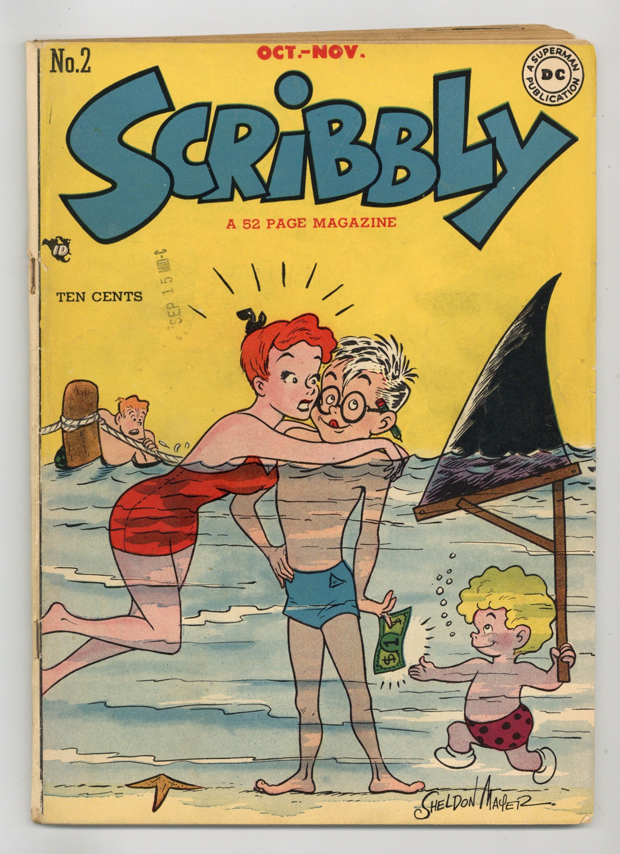 Cover art by Sheldon Mayer. The Cartoonist's Ball, script and art by Sheldon Mayer; Red accidentally invites Scribbly to the Cartoonist's Ball which drives O'Hara crazy, not that you can tell the difference. Brainless, script and art by Sheldon Mayer; One of Scribbly's cartoons accidentally gets printed instead of Terrific Man. Father's Class Ring starring Liz, art by Frank Harry. Bonny humor page by Hy Rosen. Will The Light-Finger Kid Get Out of This Spot Alive?, script and art by Sheldon Mayer; Crooks kidnap Scribbly to find out what's going to happen tomorrow in his comic strip. 52 pgs. $0.10. Cover price $0.10.