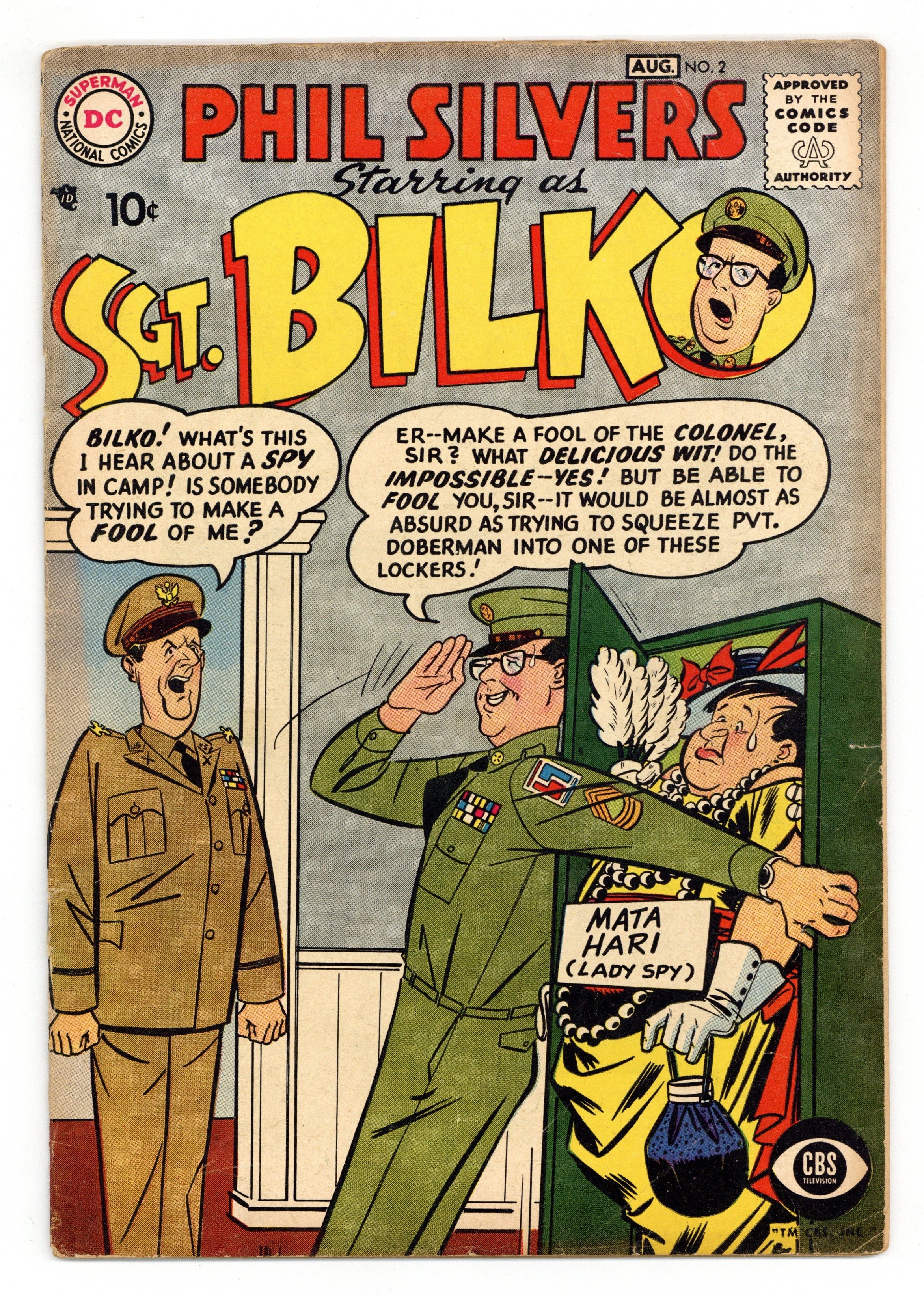 Cover art by Bob Oksner. Untitled story, art by Bob Oksner; Sgt. Bilko invents a story about the camp being infiltrated with spies to conceal the fact that he's holding an illegal dance and raffle on the base. How to Make New Friends public service announcement, script by Jack Schiff, art by Bob Oksner; Pete befriends a new kid in the neighborhood where Allergy is reluctant. 36 pgs. $0.10. Cover price $0.10.