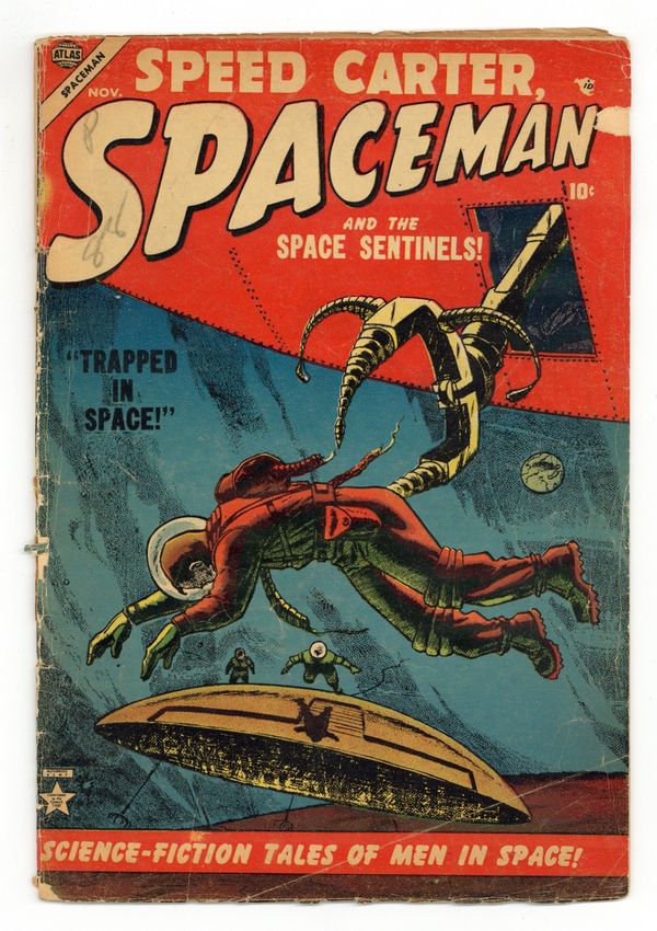 "United Planets Peace Organization," "The Half-Horrors of Hyades," "Who Stole the Sun," and "The Space Trap!" (all art by Joe Maneely). Back-up story, "Famous Explorers of Space No. 2: Mercury" (art by Benulis/Abel). Two-page text story, "The Stowaways." 36 pages, full color. Cover price $0.10.
