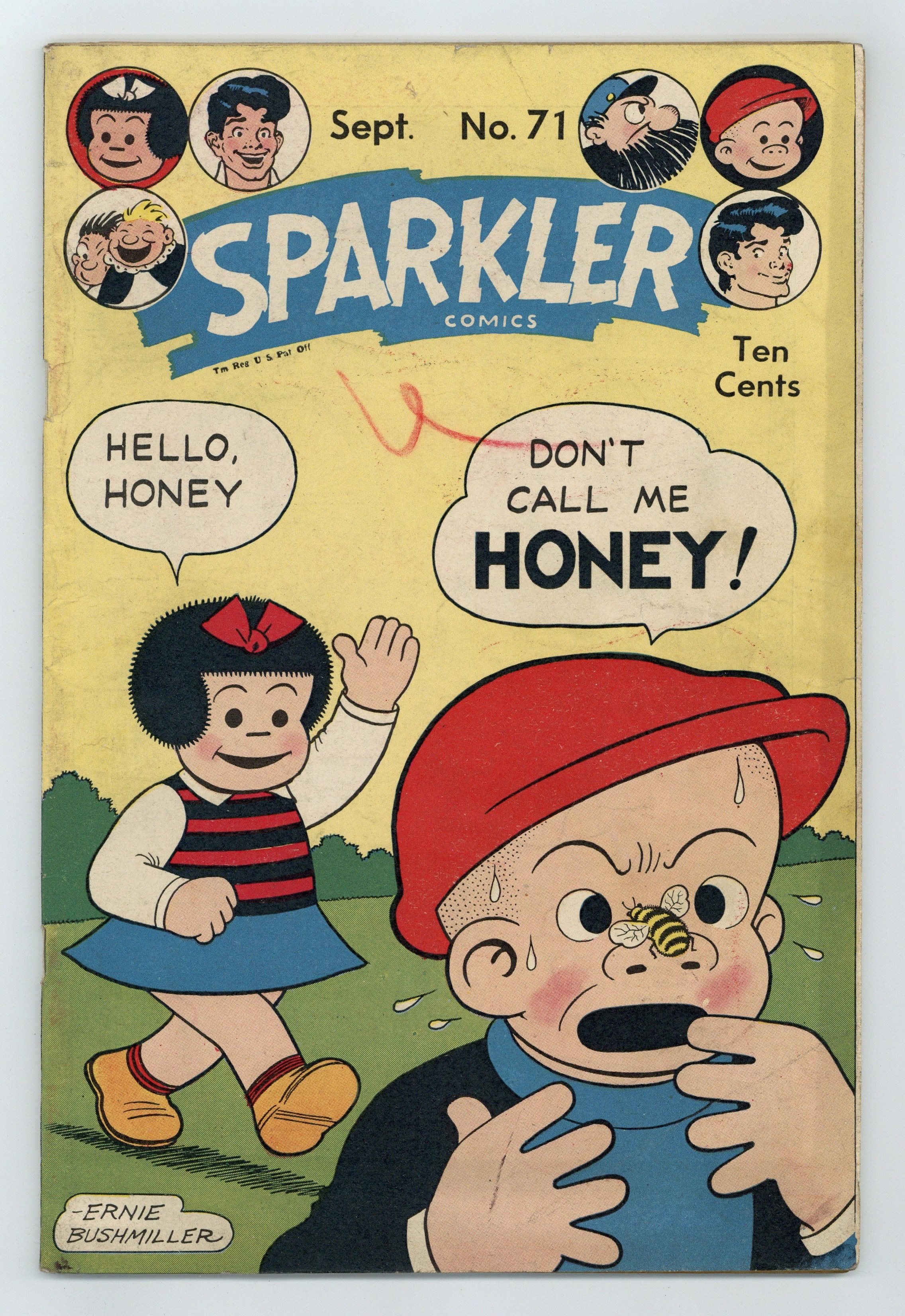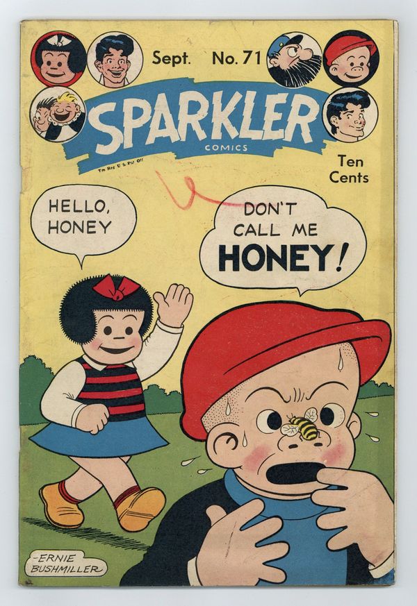 Cover by Ernie Bushmiller. Stories and art by Burne Hogarth, Al Capp, Ernie Bushmiller, Jack Sparling, Charlie Plumb, Bernard Dibble, Ed Dodd, Rudolph Dirks, J. P. Williams, Arnie Mossler and Raeburn Van Buren. United's anthology featured reprints of early comic strips, including Tarzan, Li'l Abner and Nancy. Tarzan and the pygmies are trapped on a plateau... by the living dinosaur Goru-Bongara. Hans and Fritz discover that the old ostrich-in-a-dress trick gets 'em every time. As Bathless surveys the aftermath of Becky's rampage, he meets his "other" daughter, beautiful Sue. Plus a Li'l Abner storyline by Al Capp and the Ripley-like Strange as It Seems. Li'l Abner; Scoopy; Hap Hopper; Nancy; Captain and the Kids; Tarzan; Sparkling Stars of the Air; Dink O'Day; Strange as It Seems; Abbie an Slats. 48 pages, Full Color. Cover price $0.10.
