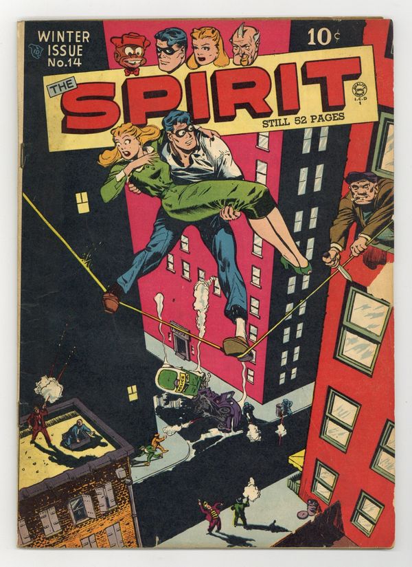 Cover art by Will Eisner. Untitled Spirit story featuring The Alibi Factory, pencils by Lou Fine, inks by Lou Fine and the Quality shop. Untitled Spirit story featuring The Kuttup Shop, pencils by Lou Fine, inks by Lou Fine and the Quality shop. Prominent Executives Vanish starring the Spirit, script by Manly Wade Wellman, pencils by Lou Fine, inks by Lou Fine and the Quality Shop. Untitled Spirit story featuring The Masked Magician, script by Manly Wade Wellman, pencils by Lou Fine, inks by Lou Fine and the Quality shop. Untitled Spirit story featuring Belle La Trivet, pencils by Lou Fine, inks by Lou Fine and the Quality shop. Flatfoot Burns story, script and art by Al Stahl. Untitled Jonesy story, script and art by Paul Gustavson. 52 pgs. $0.10. Cover price $0.10.