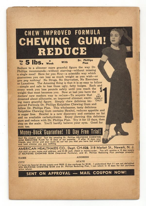 Cover by L. B. Cole. Stories and art by Rudy Palais and Vern Henkel. Pre-Code horror comics from L. B. Cole's Star Publications. A crook ill-advisedly enters the door that has been sealed with a curse, despite the warnings, and pays the price. Buck Kelly and his cohorts have a robbery and murder spree across 1927 San Francisco. Treasure hunters trick natives by masquerading as a long-dead chieftain, at least until Jungle Lil gets wind of it. Also featuring vintage ads for the "New! 1953 Space Commander Vibro-Matic Walkie Talkies" and All Live Rubber Giant Beach Ball. Horror Beyond the Door; Death at Midnight!!; The Kill-Crazy Monster; Jungle Lil: The Lurking Ghosts. 32 pages, Full Color. Cover price $0.10.
