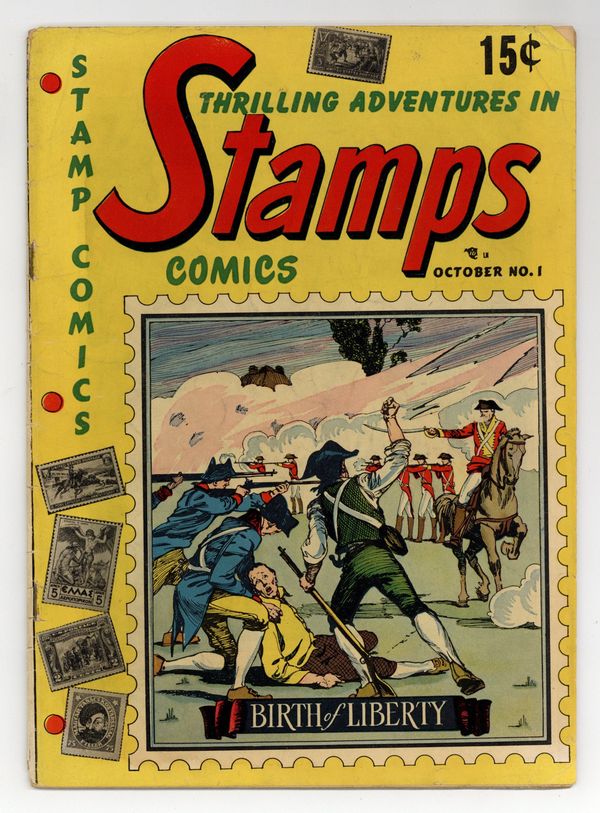 George Rogers Clark Hero of Vincennes, art by H. C. Kiefer. Gyorgy Dozsa and the Throne of Fire, pencils by Ed Goldfarb, inks by Bob Baer. Baseball and the Abner Doubleday Myth, pencils by Harry Harrison, inks by Ernie Bache. Oddities in Stamps fact two-pager. The Mail Must Go Through featuring The Pony Express, pencils by Ed Goldfarb, inks by Bob Baer. Man's First Flight starring Icarus. How to Collect Stamps article. The Leopard Men, pencils by Stephen Kirkel. 36 pgs. $0.15. Cover price $0.15.