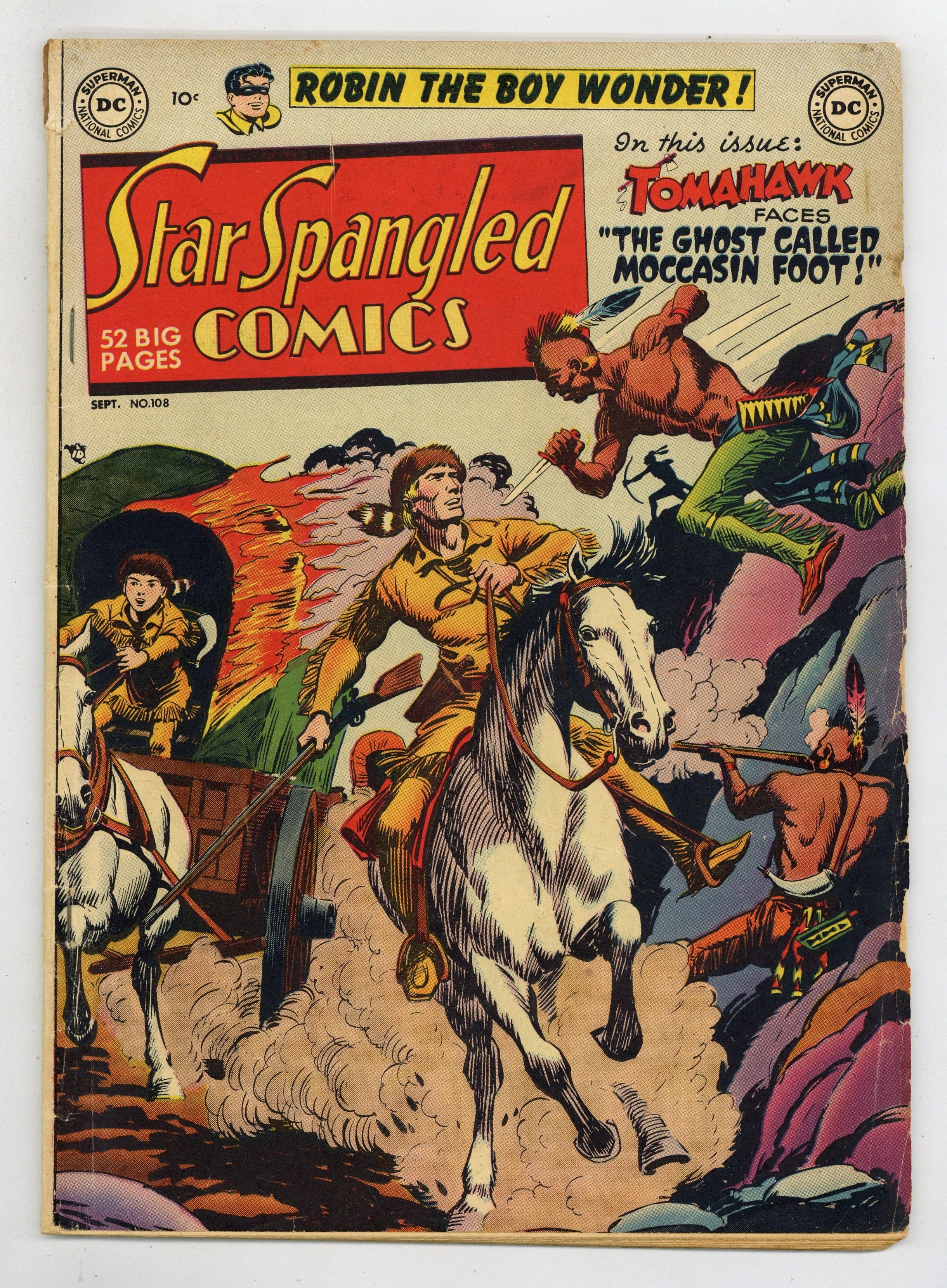 Tomahawk in "The Ghost Called Moccasin Foot" (art by Fred Ray), Captain Compass in "The Secret of Island X," Manhunters Around the World in "The Pyramid Police" (pencils by Curt Swan), and Robin in "Robin, Washington Page Boy!" Cover price $0.10.