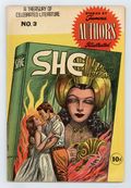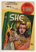 Published Jan 1950 by Seaboard Publishers.$30.00Cover art by Henry Kiefer. "She," script by H. Rider Haggard (as Sir Rider Haggard) and Dick Davis (adaptation), art by Vincent Napoli; L.H. Holly and Leo Vincey venture into Africa and find the lost kingdom Kor, ruled by Ayesha, a woman rendered immortal by a supernatural Flame of Life. Biography of author H. Rider Haggard. "The Dark Continent" article; Information about Africa. "The Civilization of Ancient Egypt" article; Information about Egypt, particularly concerning the construction of the pyramids. Holly and Vincey illustration on back cover by Henry Kiefer. 52 pgs., full color. Cover price $0.10.