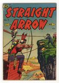 Art by Bob Powell and Fred Meagher. Cover by Fred Meagher. Rancher Steve Adams, a Comanche raised by white settlers, has a secret identity as the warrior Straight Arrow, a hero who first appeared on a popular radio show. Steve and Packy help a prospector reclaim his remote mountaintop mine from bandits. Red Hawk must pass through dangerous Cheyenne lands for the magic plant that can save his chieftain. Flying Cloud braves a prairie fire to deliver a warning to settlers. Plus non-fiction features on bows and archery. Indian Bow Making; The Claim Jumpers!; The Fight with a Grizzly; The Trial of Flying Cloud!; Red Hawk: The Magic Plant; Apache Terror!; Bow Stringing and Bow Care. 32 pages, Full Color. Cover price $0.10.