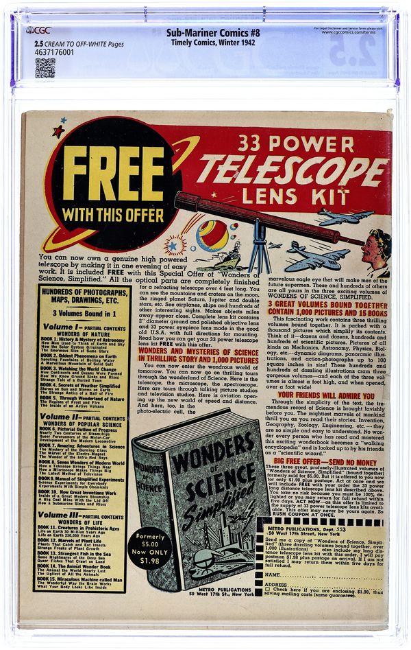 Tags: Sub-MarinerPublished Dec 1943 by Timely/Marvel.$2,050.00- Paper: Cream to off white