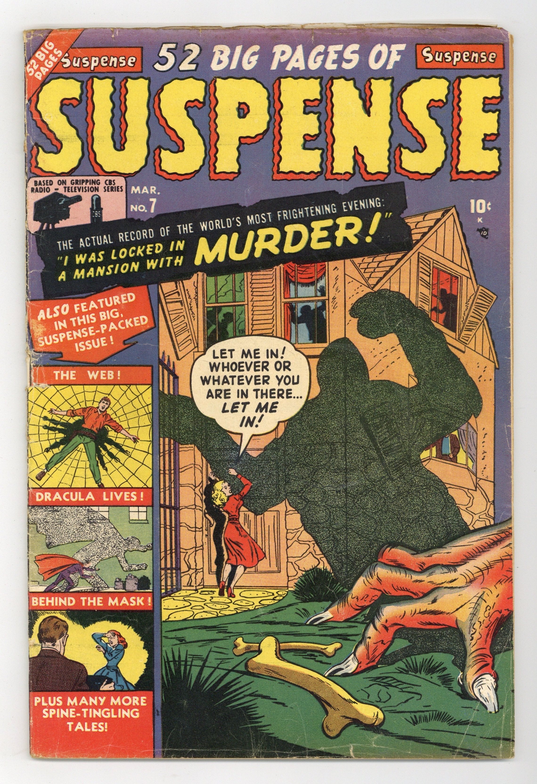 Cover art by Sol Brodsky. I Was Locked in a Mansion with ... Murder!; the actual record of the "world's most frightening evening." Behind the Mask, script and art by Don Rico. The Web. Quiet Destiny text story. Terror in the Tent! The Phantom!, art by Murphy Anderson. Dracula Lives! 52 pgs. $0.10. Cover price $0.10.