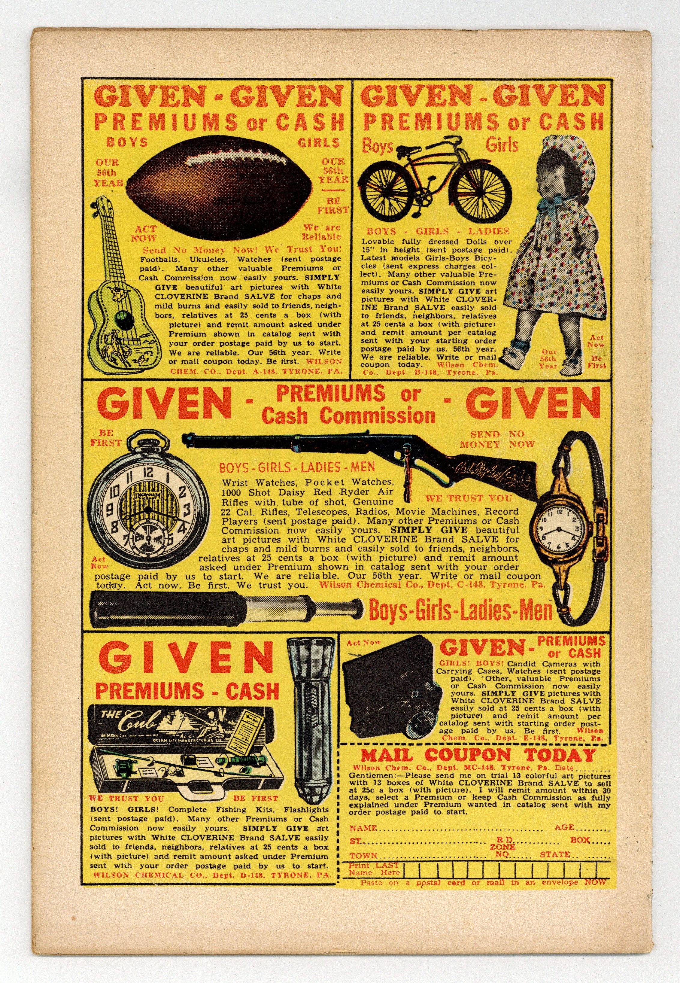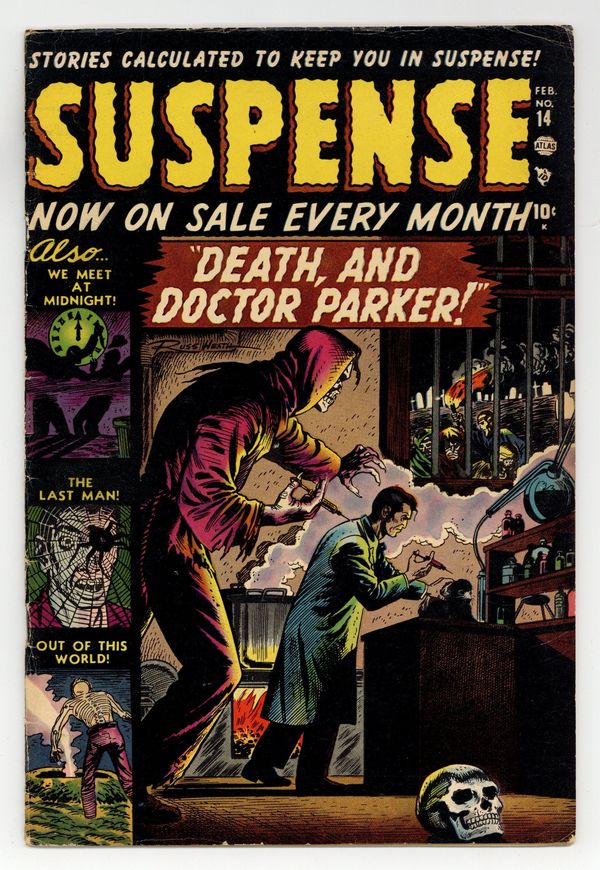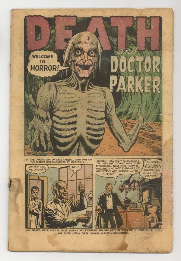 Cover art by Russ Heath. Death and Doctor Parker, art by Russ Heath; Doctor Parker injects himself with Doctor Hart's immortality serum. We Meet at Midnight, art by Allen Bellman. The Last Man, pencils by Mike Sekowsky. The Hide-Out, art by George Klein. Out of This World. 36 pgs. $0.10. Cover price $0.10.