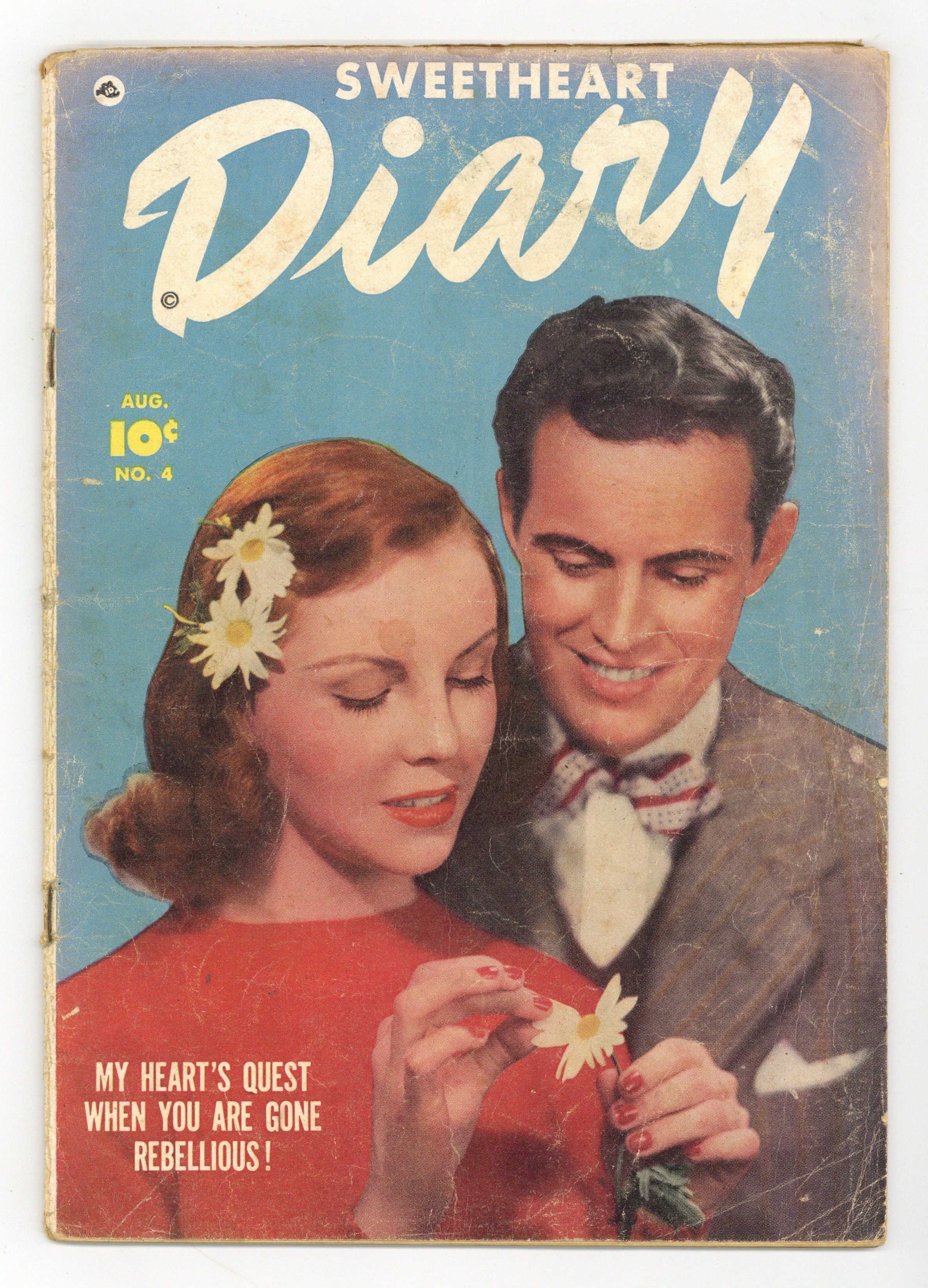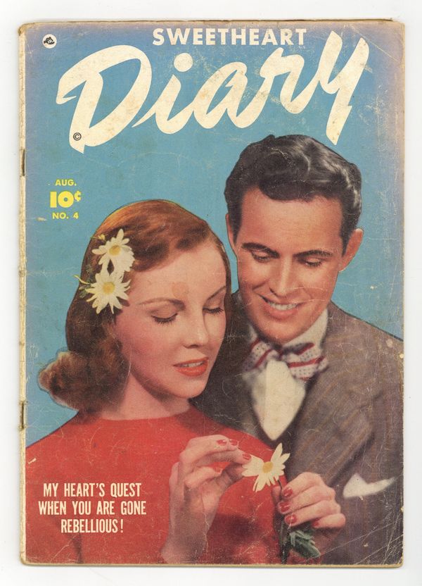 Stories and art by Wally Wood and others. Drama and melodrama entwine in this early romance comic. A lonely lighthouse keeper aids an injured man and falls in love with him, only to learn he's a fugitive from justice. Jean gets picked up as a vagrant by handsome cop Dave after losing her traveling saleswoman job, but the small town smells a scandal in their romance. Erna dates Raymond to get back at Ken, but Raymond wants more, in a story with art by the legendary Wally Wood. My Heart's Quest; Rebellious!; Leading Lady; When You Are Gone. 32 pages, Full Color. Cover price $0.10.