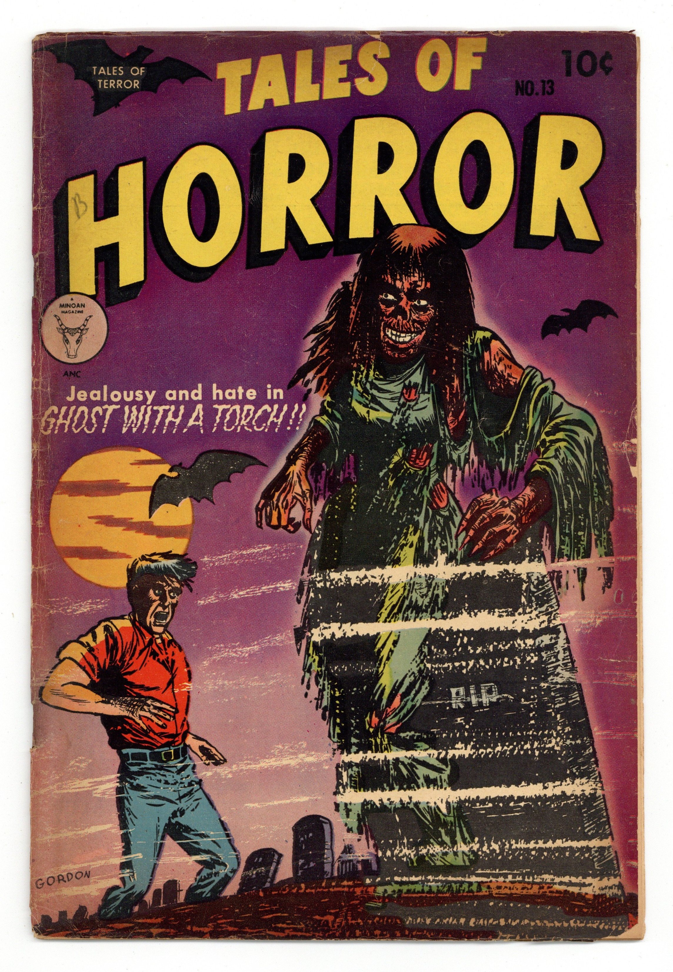Cover by Al Gordon. Stories and art by Al Gordon, H.L. Larsen, Medio Iorio and Myron Fass. Pre-Code horror comics from Toby Press. A woman's ghost rises from the grave to visit her still-living husband, only to learn he's met someone else. A man realizes that demon-possessed children are behind a series of horrible murders - but could his own son be one of them? A vampire travels to the American West, where no one has ever heard of vampires or how to kill them, in the amusing horror-Western hybrid The Vampire Goes West. A Womans Revenge; Ghost with a Torch; Disaster Included; The Little Children; The Vampire Goes West. Final issue of the series. 36 pages, Full Color. Cover price $0.10.