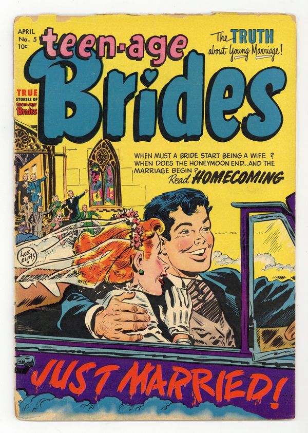 Cover art by Lee Elias. Homecoming, art by John Prentice. Wedding Day text story. Bride of the Month story, art by Bob Powell. Jealousy, pencils by Manny Stallman. Two Loves Have I, pencils by Bob Powell, inks by Bob Powell Studio [Bob Powell; Howard Nostrand; George Seifringer; Martin Epp]. A Place of Our Own text story. Time of Trial, art by Warren Kremer. For Better - For Worse, art by John Prentice. 36 pages, full color. Cover price $0.10.