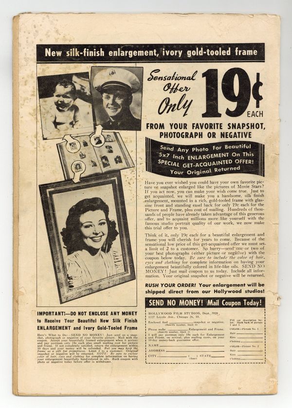 Stories and art by Matt Baker, Frank Sieminsky and Dana Dutch. Tales of teen angst and amour. These oversized issues include content typical of a teen girls' magazine, alongside comics stories by the likes of celebrated good-girl artist Matt Baker. Sally's quest for love is complicated when she gets caught up in the crooked schemes of her mother, a phony fortune-teller, in a story with art by Baker. In another Baker story, Southern belle Carolyn avoids men after bad experiences, and tries to get her sister Ginny to do the same. Jo Ann is ashamed that she lives with her father in a barge on the waterfront, and tries to hide it from the men she dates. Railroaded into Romance; Love Was His Profession; I Was Love-Shy; Don't Cry, Baby!; Her Secret Love!; I Tried to Lead a Double-Life. 7 1/2-in. x 11-in., 32 pages, Full Color. Cover price $0.10.