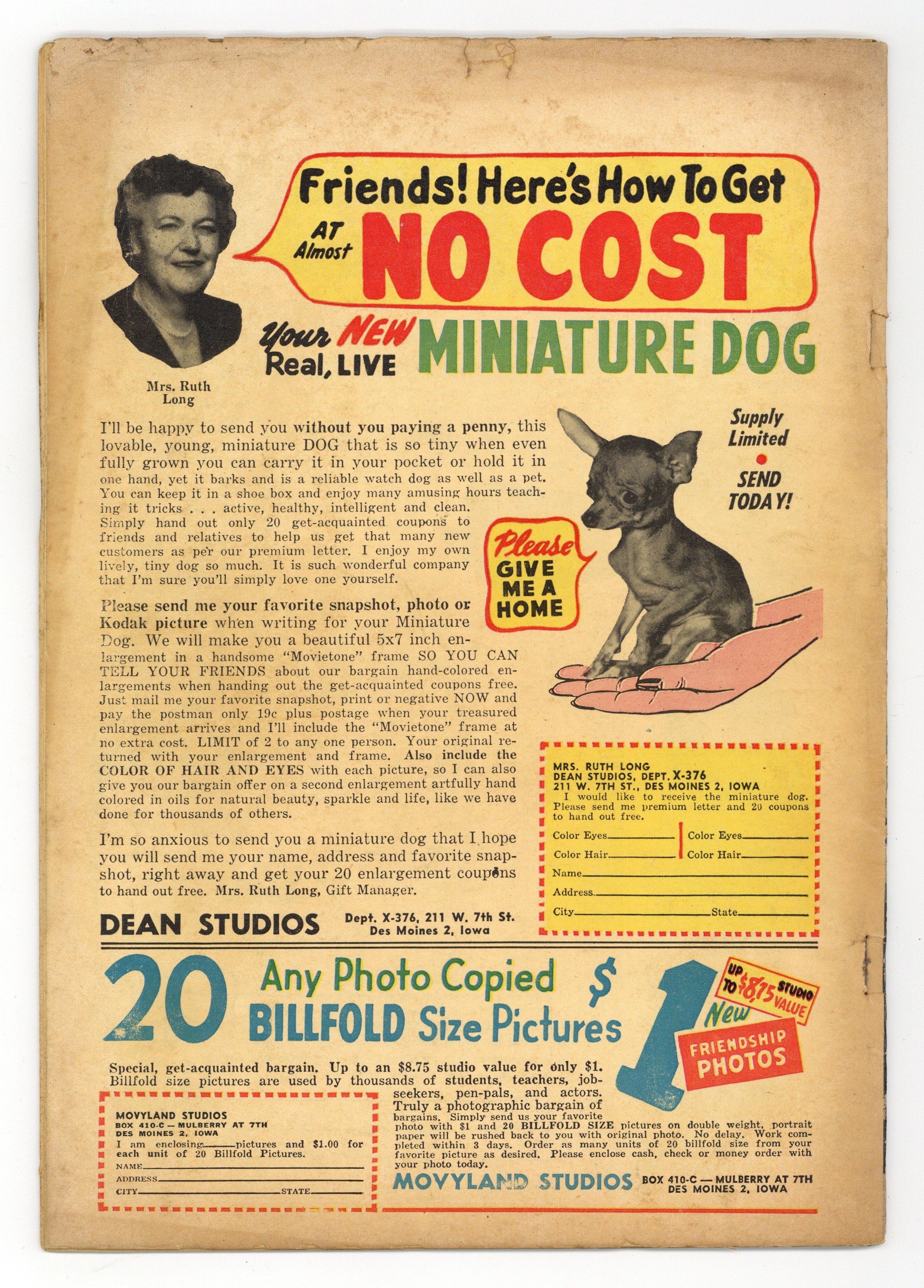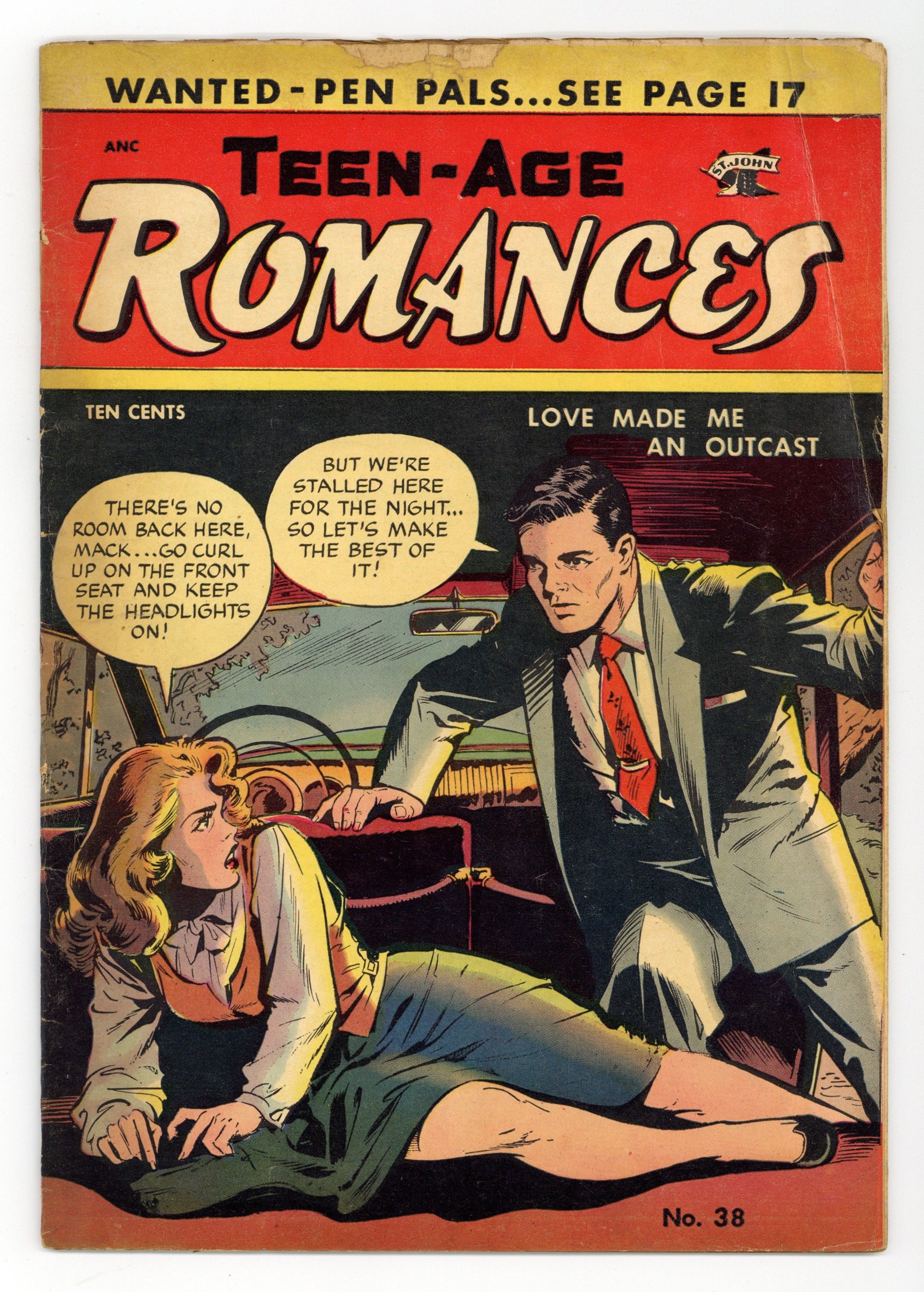 Cover by Matt Baker. Stories and art by Matt Baker and Dana Dutch. Tales of teen angst and amour, often featuring art and covers by celebrated good-girl artist Matt Baker. Kathy finally meets Tom, a nice guy who actually likes her, but his sister's jealousy and gossip could ruin everything, in a story with art by Baker. In another Baker story, Betty dates bad boy Harry despite the warnings of her friends and parents, but when she finally sees the truth about him, he threatens to ruin her reputation. Reputations are also foremost in the thoughts of Jane when she starts dating wealthy Ron, and she keeps it secret from her real friends like Bud. Saucy pre-Code cover by Baker. I Threw Away My Reputation on a Worthless Love; My Double-Life Caught Up with Me; I Talked Myself into Love Troubles; Two-Timing Taught Me to Love. 32 pages, Full Color. Cover price $0.10.