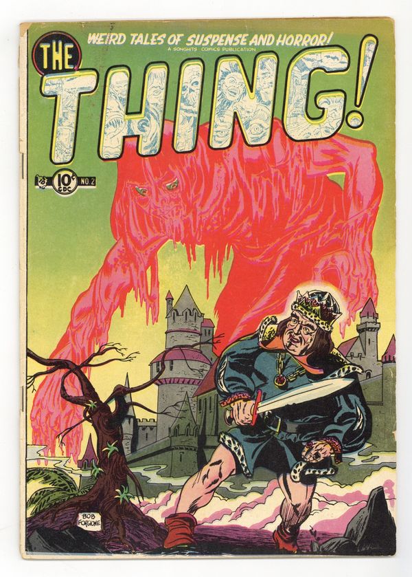 Cover by Bob Forgione. "The Red Death," art by Bob Forgione; A terrible and deadly plague ravages a medieval king's land; While his peasants die, the king holds a masquerade ball. 'El Toro Diablo,' pencils by Albert Tyler, inks by Bob Forgione; A boy with the looks and the horns of a bull becomes famed matador Tomas Hernandez. "The Witch's House" text story. "The Creature," pencils by Albert Tyler, inks by Bob Forgione; The earth is befallen by mysterious cancerous growths. "The White Rat"; A doctor is bullied by his strong assistant; He invents a muscle growth serum and goes for payback. 36 pgs., full color. $0.10. Cover price $0.10.