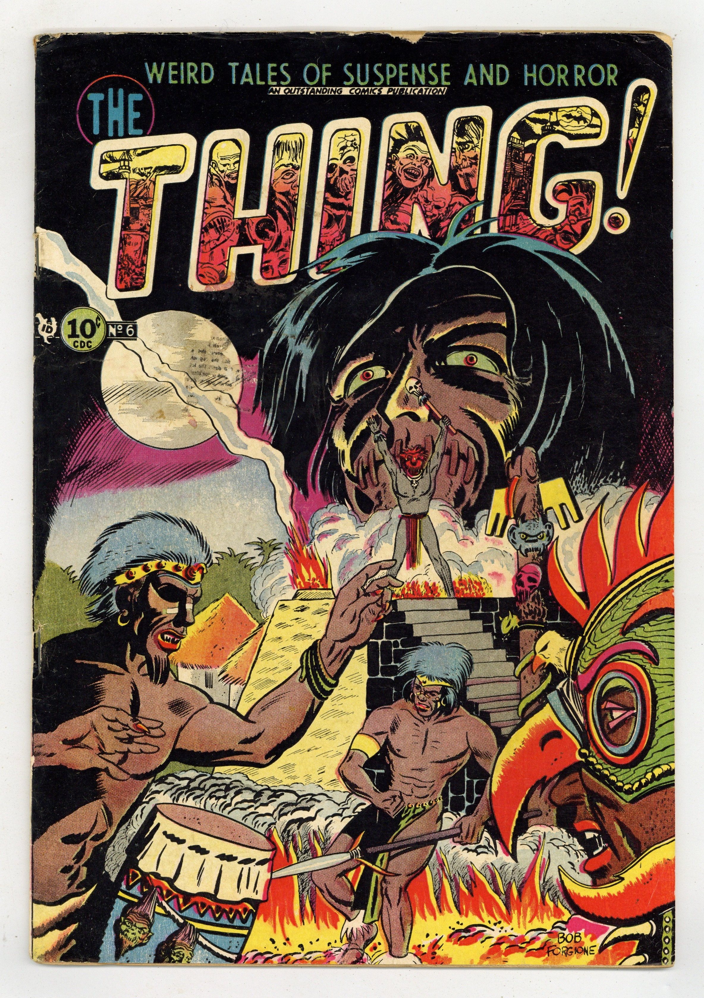 Cover by Bob Forgione. "The Tale of a Salem Witch," pencils by Art Capello, inks by Dick Giordano; A witch helps a man regain his stolen horses; She lets a ship sink so that the animals can swim ashore. "The Weird Tale of the Rock Bound Ghost," art by Bob Forgione; A gang of smugglers encouters ghosts from the past at a lighthouse; In helping the ghosts settle an old score, the men are promised a gold treasure. "Vengence Will Be Mine," art by Dick Giordano; Two businessmen commit theft and murder, but frame their partner for the crimes. "The Riddle of Benares" text story. "The Warlock of London," art by Collier; The witcher Rego takes human form by using magic brews and terrorizes London society in the disguise of Lord Harwood. "An Ancient Ghost Story," art by Dick Giordano. "Jibaro Madness," art by Bob Forgione; Explorers searching for the secret of head-shrinking are captured by madman Maximo; He shrinks them to doll size and prepares to cut their heads off. 36 pgs., full color. $0.10. Cover price $0.10.
