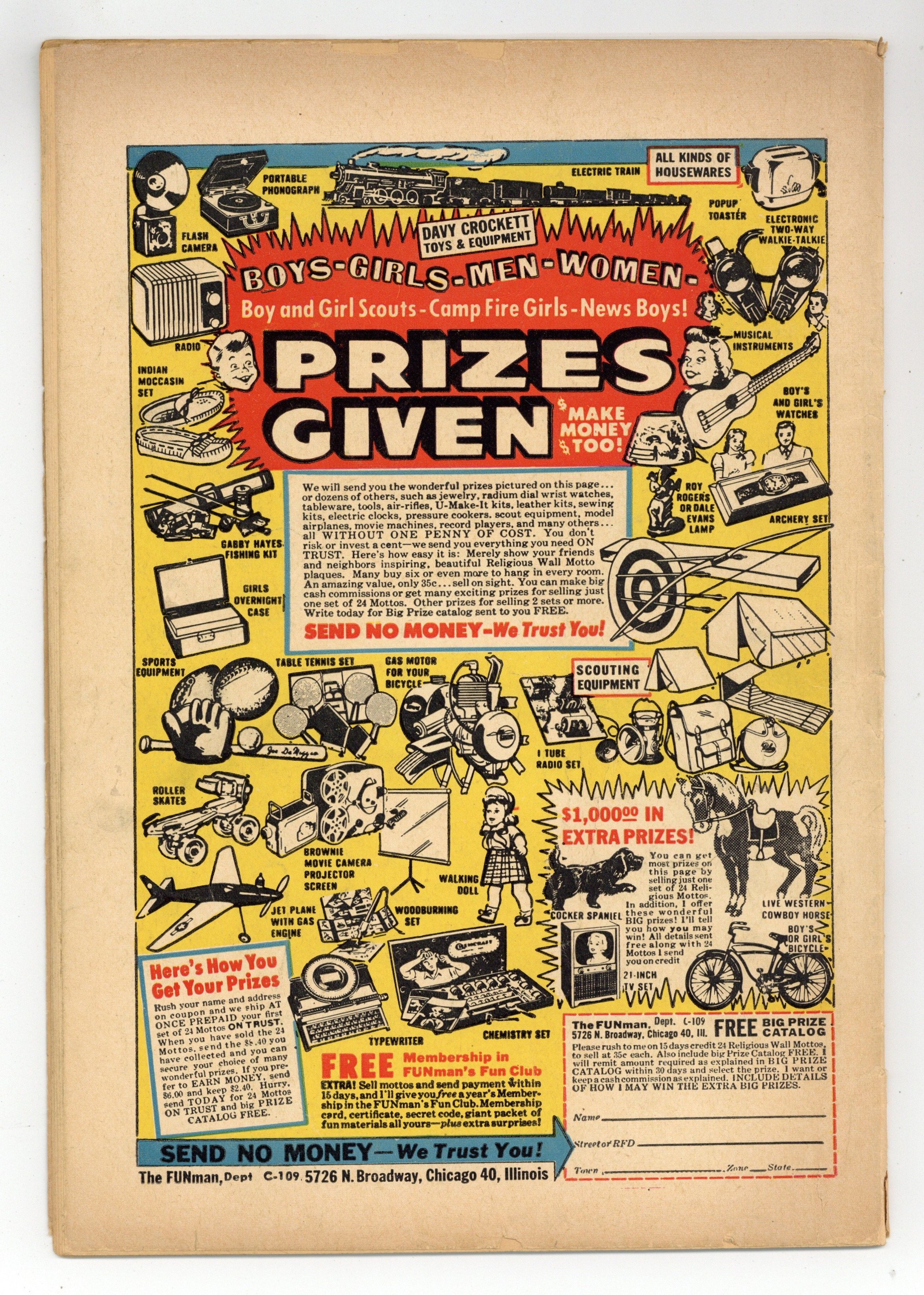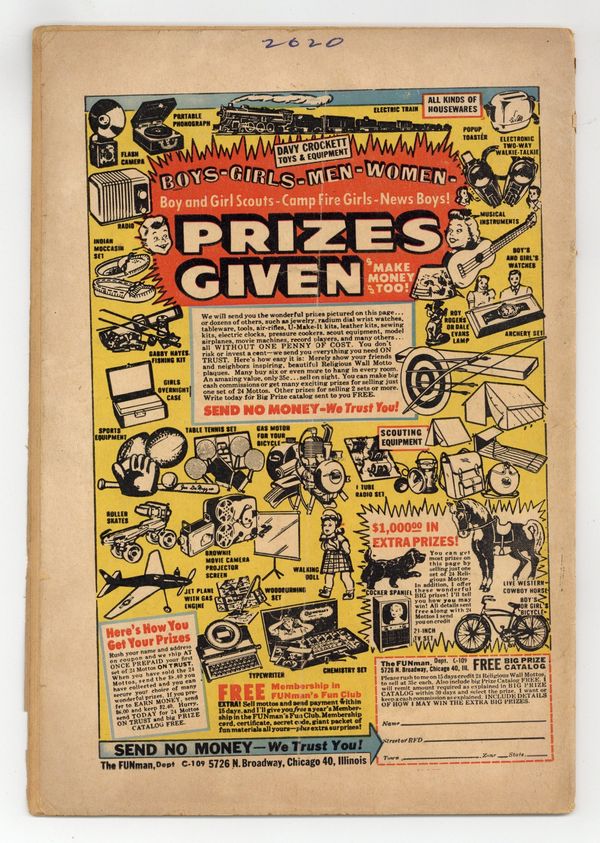 Published Oct 1957 by Charlton Comics Group.$105.00- 1.5" Spine split from bottom.