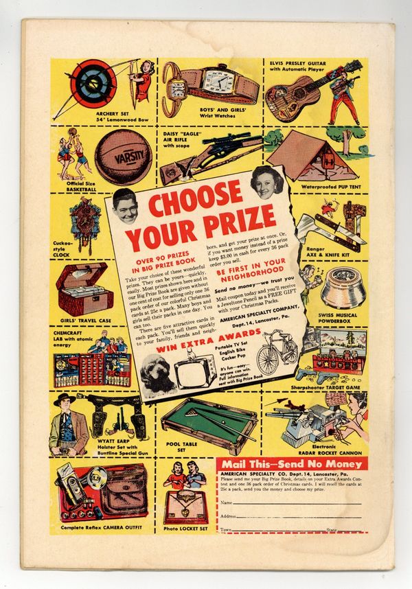 Published Dec 1958 by Charlton Comics Group.$64.00- Staple rust. Rust migration.