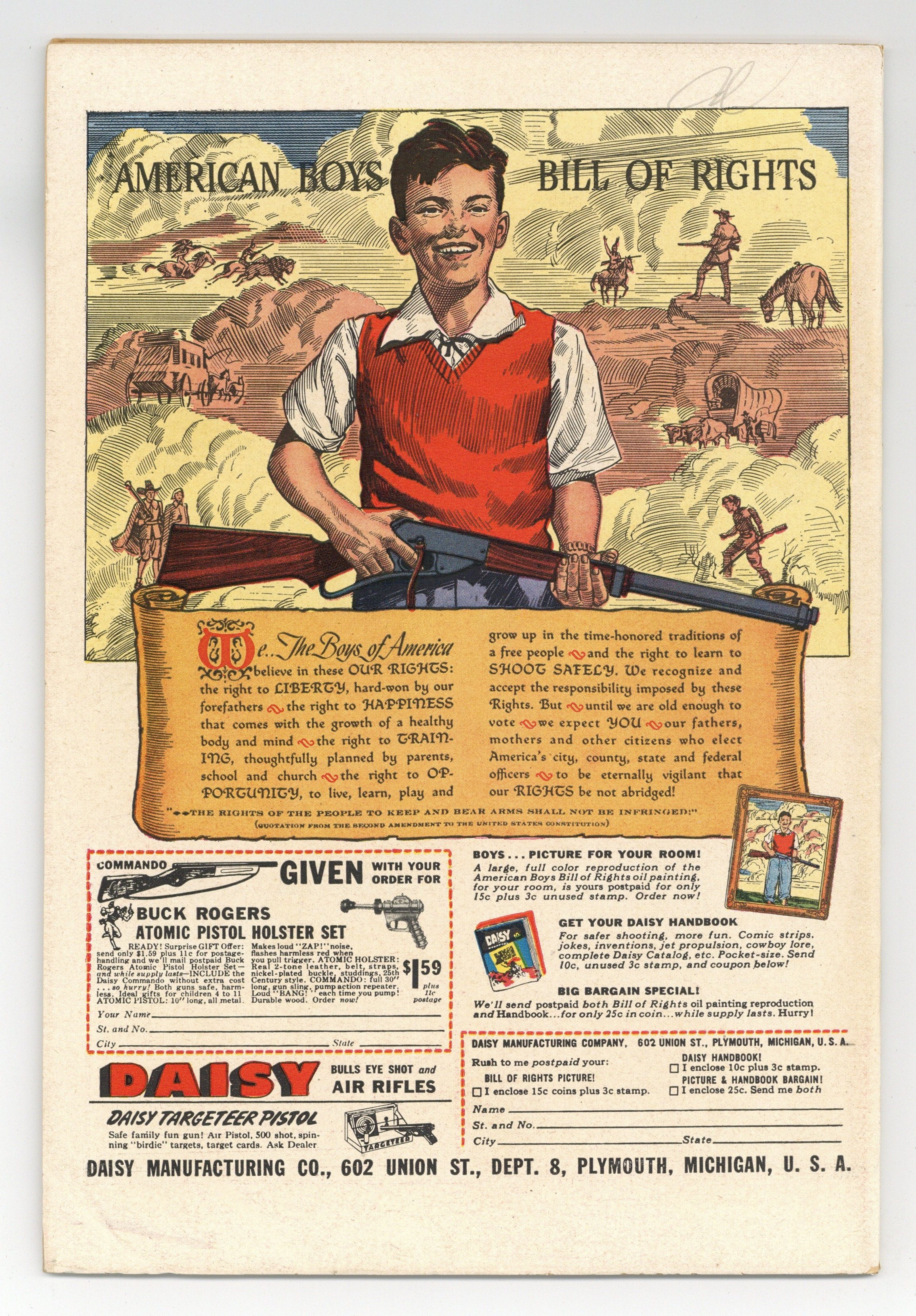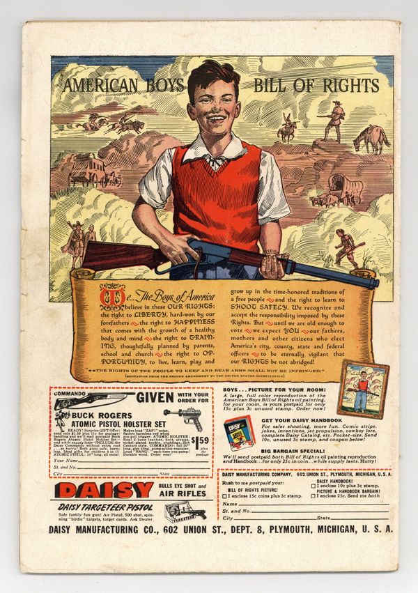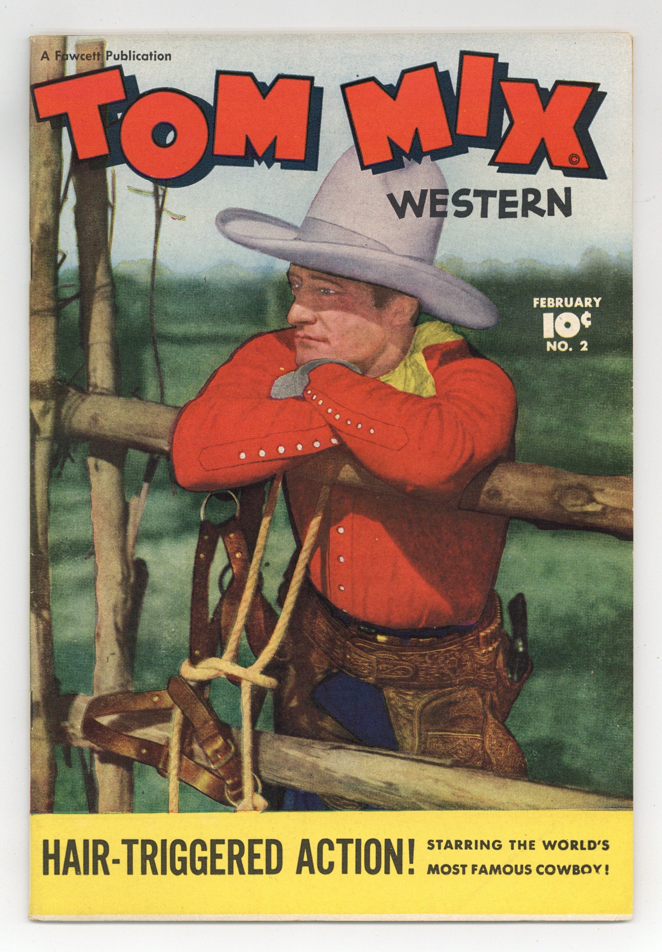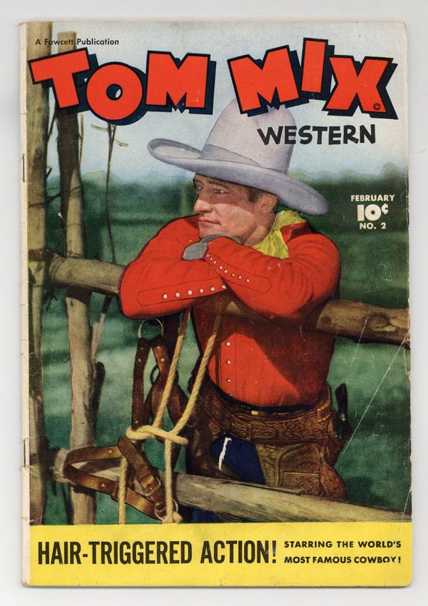 Stories and art by Al Liederman and others. Silent-movie cowboy Tom Mix became a pop-culture icon with his 1940s radio show and this tie-in comic. Tom investigates when a stagecoach mysteriously disappears and reappears. Prospector Clem seeks Tom's help when he's haunted by a ghost in his mine, but Tom suspects it's owlhoots, not haints. Tom seeks the answer after a series of murders where the victims are all found smiling. The Mystery of the Vanishing Stagecoach; Cowboy Cal; Saddlehead; The Trespassers; The Dude Who Dood It; Tumbleweed Jr. The Pipe Dreams; Round Up Time with Tom Mix; The Ghost of the Dobie Gold Mine; Whipper-Snappers; The Smiling Dead Men. 48 pages, Full Color. Cover price $0.10.
