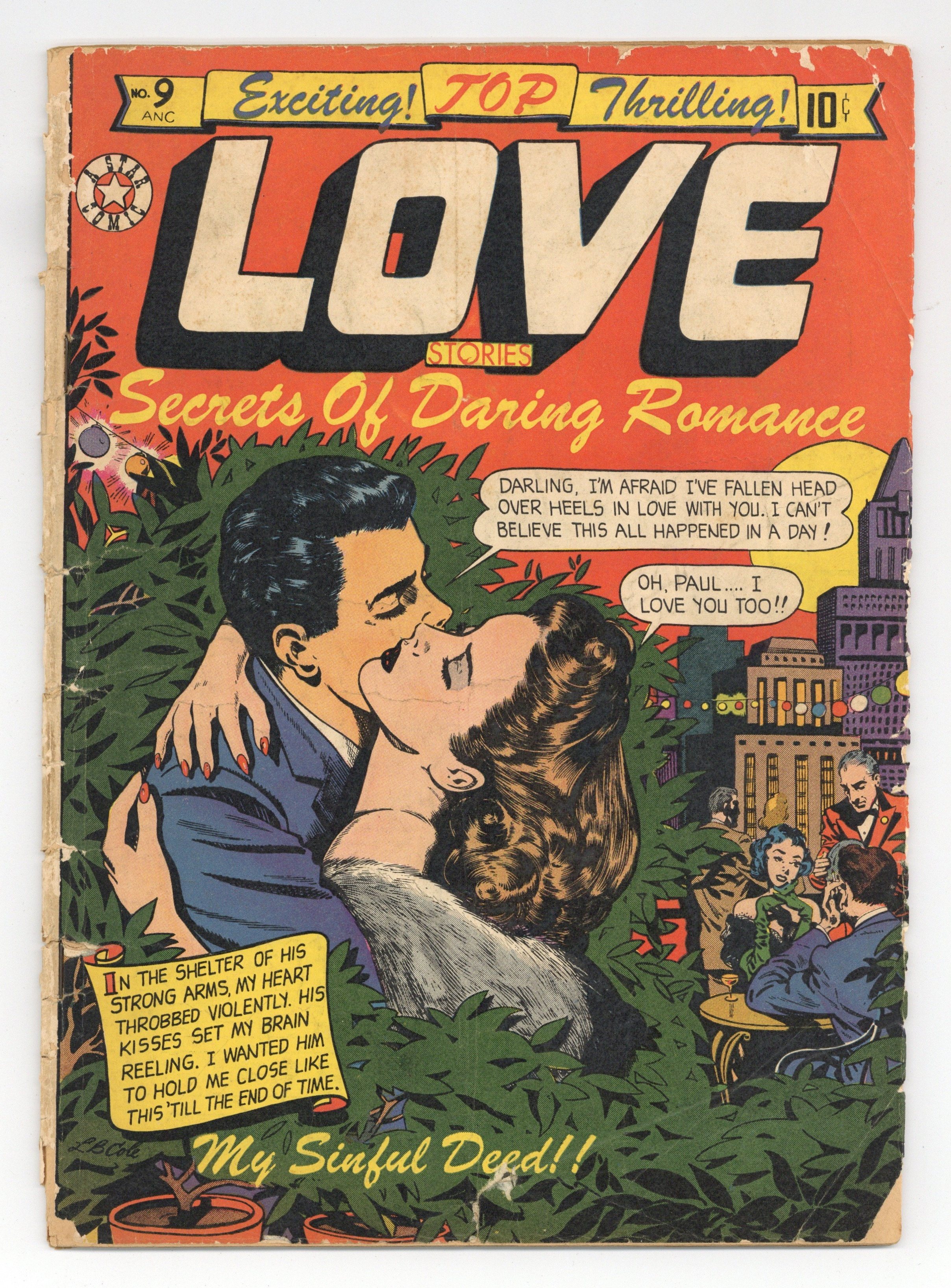 Cover by L. B. Cole. Stories and art by Ken Battefield and others. Romance comics with teen angst from L.B. Cole's Star Publications. Paul and Ellen have a whirlwind romance, but later she wonders if their relationship can actually last. Nina thinks that her lover Ivan is a stranger to her. Marianne feels that Mr. Collins has sold her out. My Sinful Deed; The Man I Live With; He Sold My Love. 32 pages, Full Color. Cover price $0.10.