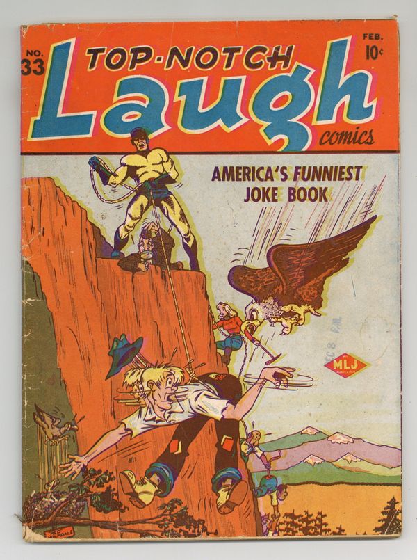 Cover by Red Holmdale. Edited by Harry Shorten. Stories by Don Dean, Sam Cooper, Don Dean, Carl Hubbell, Vivian Lipman, Red Holmdale, Ed Groggin, and Bill Woggon. Super-heroic and humorous tales, many of them filled with action and adventure—these are Top Notch Laugh comics! 68 pages, full color. $0.10. Cover price $0.10.