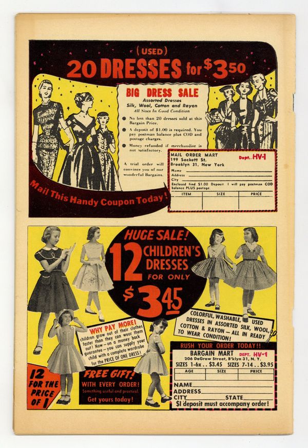 $53.00Stories and art by Jack Sparling, Tom Hickey and John Prentice. Torrid tales of love and heartbreak dressed up as advice to the lovelorn from Harvey. Karen wants to play the field, until she drives away the man she really loves. Stacey is willing to sacrifice the respect of one man for a smile from another. Reporter Cynthia falls for a man she despises. Night of Despair; I Loved Two Men; Love Isn't Always Blind; Golden Harvest; I Courted Heartbreak!; Stars in My Eyes. 36 pages, full color. Cover price $0.10.