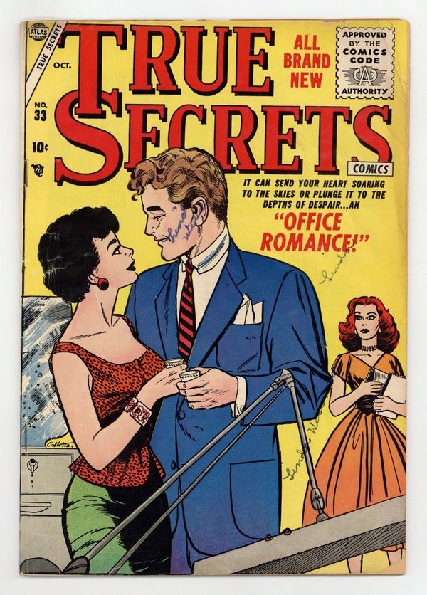 Cover by Vince Colletta. Stories by unknown. Art by Jay Scott Pike, Tom Sawyer, Vince Colletta and unknown. All brand new! In this issue: It can send your heart soaring to the skies or plunge it to the depths of despair...an "Office Romance!" Plus: "The Sacrifice of Kathy Woods" with pencils by Jay Scott Pike; "Jilted" with art by Tom Sawyer; "At Last, It's Love!" with art by Vince Colletta; and 2-page text story "Love Walked In"! 32 pages, full color. Cover price $0.10.