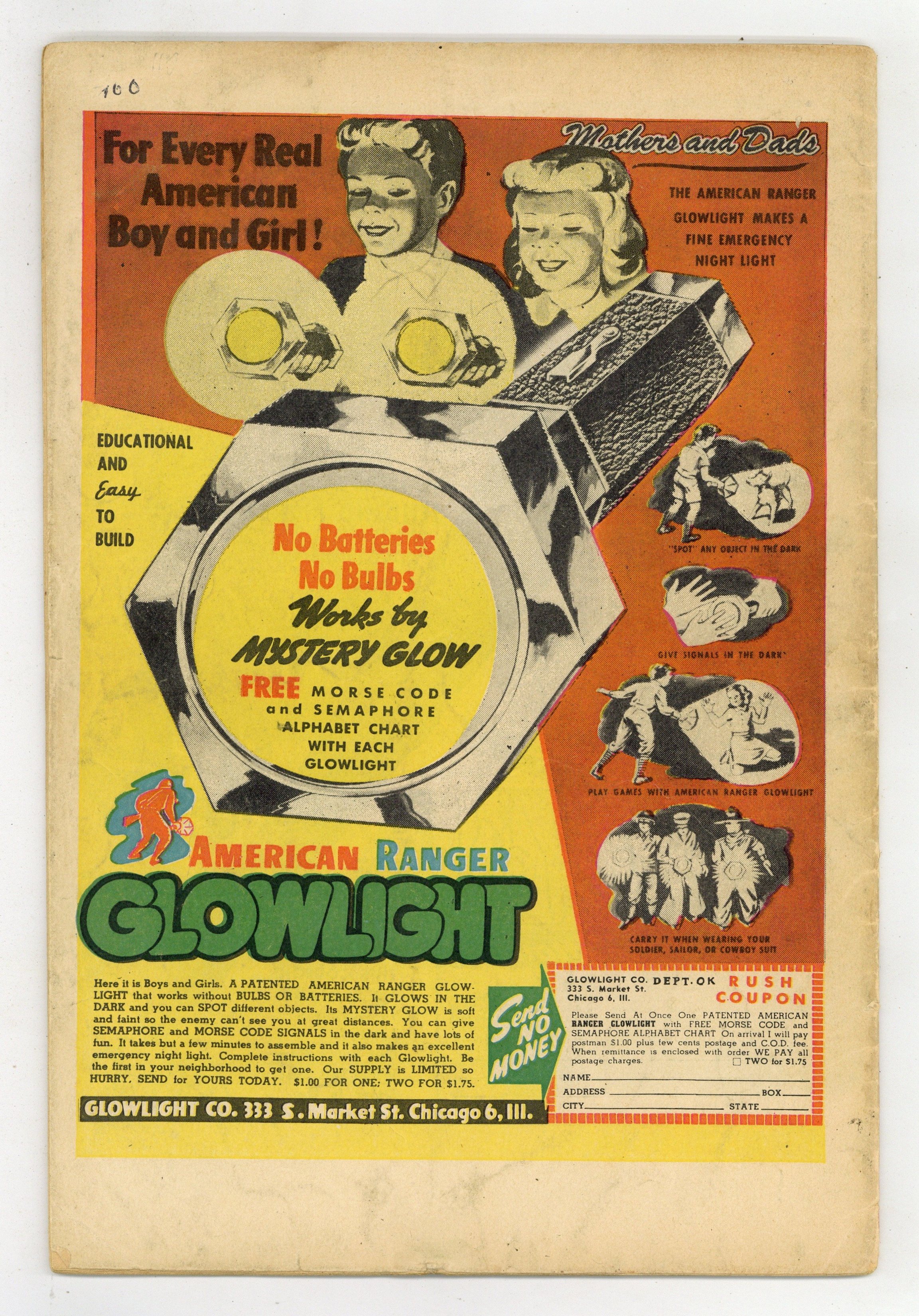 Cover by Bill Hudson. Stories and art by Manny Stallman, Jack Warren, Al Fago and Harold Sherman. Comedy and adventure comics from Spotlight Publishers. Airman Jay Case of the US Army Air Force (precursor to the US Air Force) encounters betrayal while battling Nazis on the African front in 1943. Hooch and Pooch, respectively the monkey and dog mascots of US Marine squadrons in Europe, risk their lives to deliver a call for reinforcements on the battlefield, in a strange mix of funny-animal drama and WWII propaganda. The owner of a struggling magic-supply store gets unwanted assistance from well-intentioned pixie Superstitious Al-o-ysius. Adventure In... Africa; Twinklettes; Hooch and Pooch; G.I. Fun; Mind Waves!!!; Hop and Pop; Gems O' Fun; Ella; The Legend of Superstitious Al-o-ysius. 36 pages, Full Color. Cover price $0.10.