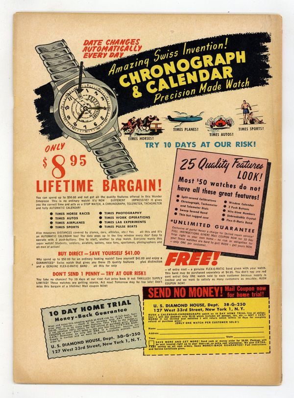 Cover by Harvey Kurtzman. Stories by Harvey Kurtzman and Tech. Sgt. James C. Jones, Jr. Art by John Severin, Will Elder, Dave Berg, and Jack Davis. Harvey Kurtzman's legendary series enlisted top EC artists for gritty tales of war and adventure. MAD legend Will Elder inks the tale of a losing battle for George Washington in the early days of the Revolutionary War. A new recruit learns a hard lesson in modern warfare, in an early story by future MAD "Lighter Side" artist Dave Berg. The life and death of the legendary WWI fighter ace known as The Red Baron. Plus a text story about snipers by Technical Sergeant James C. Jones, Jr. Korea!; Red Knight!; Scout-Snipers!; Washington!; Fire Mission! 36 pages, Full Color. Cover price $0.10.