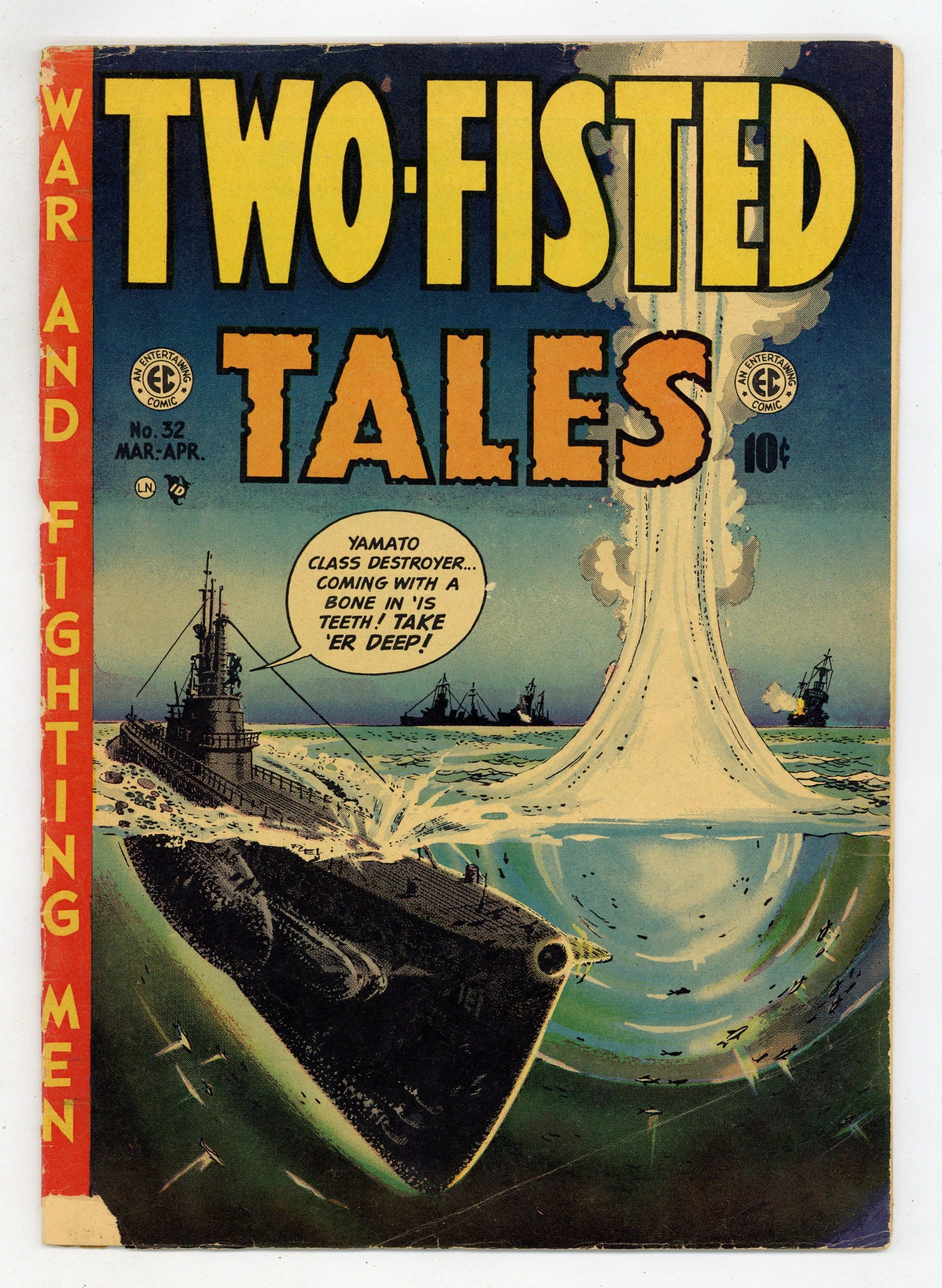 Cover by Wally Wood. Stories by Harvey Kurtzman and Jerry De Fuccio. Art by Joe Kubert, Johnny Craig, Wally Wood, and Jack Davis. Harvey Kurtzman's legendary series enlisted top EC artists for gritty tales of war and adventure. A WWII soldier meets his final battle in a story by Johnny Craig. In a rare collaboration between two legends of war comics, Kurtzman and Joe Kubert, the real-life story of D-Day's Navy Combat Demolition team is revealed. Master strategist Hannibal launches his legendary attack on Rome, using elephants no less, with art by Wally Wood. Cool submarine cover by Wally Wood. Silent Service!; Lost Battalion!; Submarine School; Hannibal!; Tide! 36 pages, Full Color. Cover price $0.10.