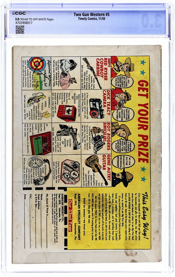 Published Nov 1950 by Marvel/Atlas.$225.00- Paper: Cream to off white