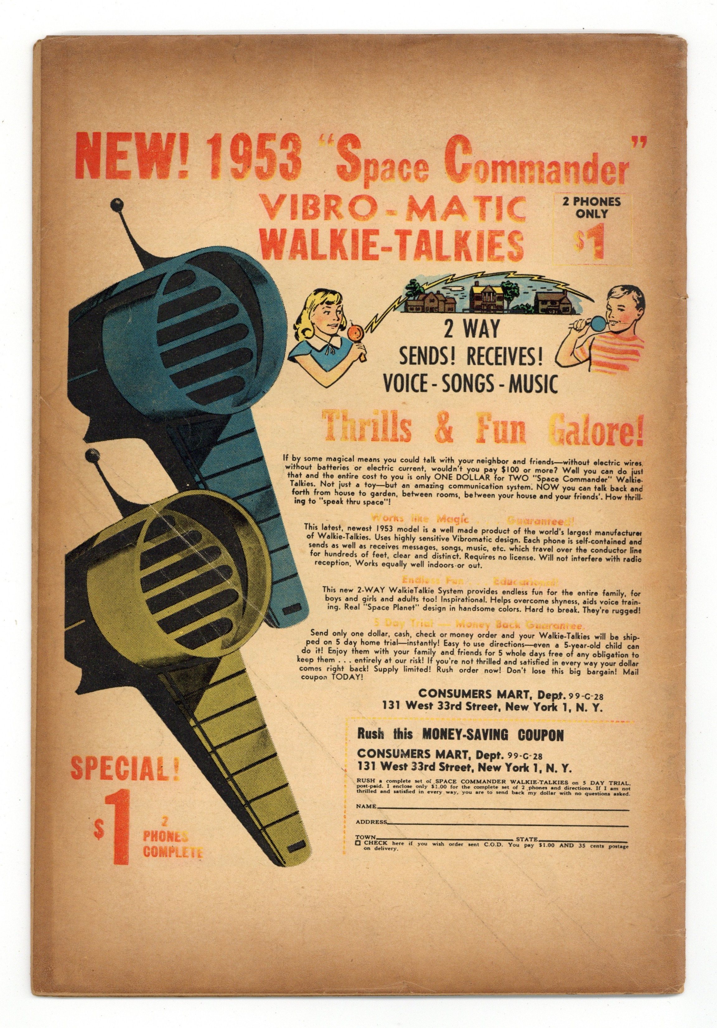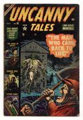 Cover by Russ Heath. Stories by Stan Lee and unknown. Art by Joe Maneely, John Romita, Sr., Sam Burlockoff, Myron Fass and Paul Reinman. The most uncanny tales ever told! In this issue: "Money Mad!" by Stan Lee and Joe Maneely; "The Mark of Death" with art by John Romita, Sr.; "Murder Will Out!" with art by Sam Burlockoff; "Call for Luther Kane" with art by Myron Fass; "The Man Who Came Back to Life" with art by Paul Reinman; and 2-page text story "The Ghost of Nesterfield Hall," reprinted from Adventures into Terror (1951) #8 (original title: "The Nesterfield Horror"). 32 pages, full color. Cover price $0.10.