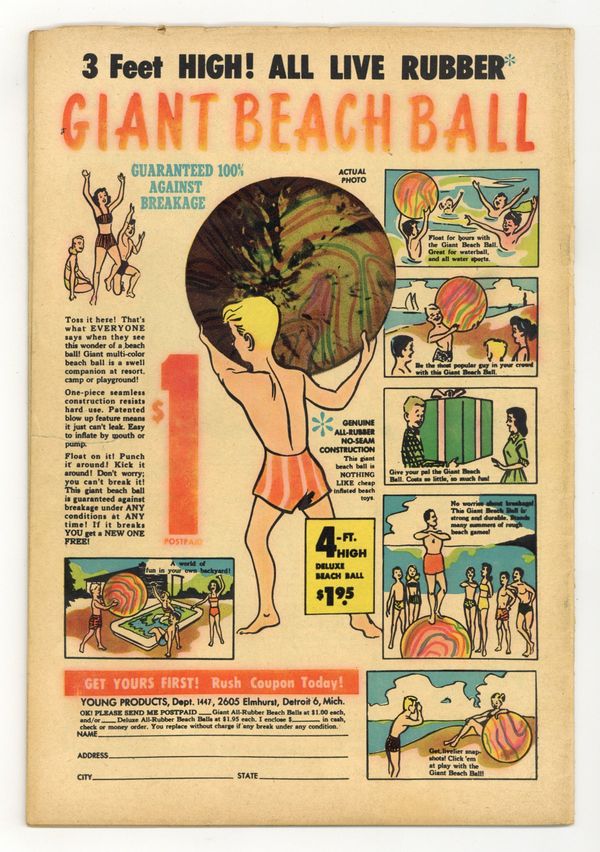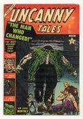$220.00Cover by Bill Everett. Stories by unknown. Art by Bill Benulis, Harry Anderson, Gene Colan, Bill Walton, Sid Greene and Jack Abel. "The Man Who Changed" with art by Bill Benulis and Jack Abel - A timid, unimpressive man stays behind to witness an H Bomb test on an island with the guinea pigs figuring that any change will be an improvement. The bomb flash blinds and burns him, but when he recovers in the hospital, he finds that he has grown taller, powerfully built and handsome. He resolves to leave the institution, although the personnel attempt to restrain him for fear of his contamination, and marry the girl he's wild about. She reacts in fear to his presence though, and all people shun him. He returns to the test island where the guinea pigs accept him. Also in this issue: "If Looks Could Kill!" with art by Harry Anderson - When a beautiful woman cheats a smitten scientist out of ten thousand dollars to gamble with, he gets revenge by transforming her ageless beauty into stone; "The Hungry Jaws" with art by Gene Colan - A plantation owner attempts to buy time to ignite a moat defense against swarming ants by sacrificing his workers to them, but even though the ploy works, the ants cross over the burning moat by crossing over the dead ant corpses and kill him; "Joe's Weak Spot" with art by Bill Walton - A man finds that he cannot be the boxer he wants to be with his literal glass jaw; "The Mental Case" with art by Sid Greene - A psychologist treats a man who claims to have a demon in his head and ends up with it himself; and 2-page text story "The Sentence!", reprinted from Astonishing (1951 Marvel/Atlas) #9 (original title: "Vengeance of the Time Stream"). 32 pages, full color. Cover price $0.10.