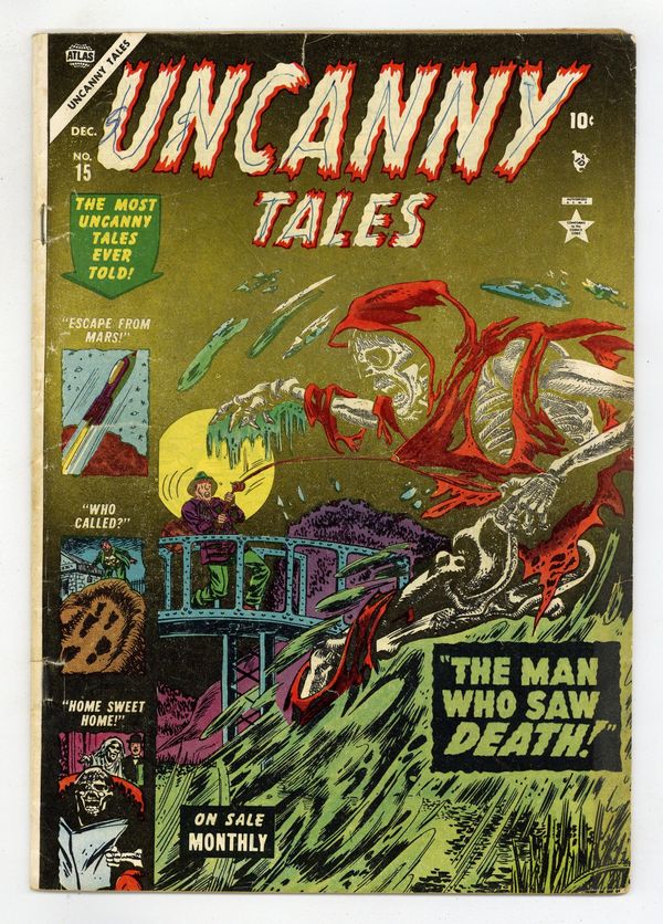 Stories by unknown. Art by Joe Sinnott, Tony DiPreta, Al Eadeh, Ross Andru and Myron Fass. The most uncanny tales ever told! In this issue: "Escape from Mars" with art by Joe Sinnott; 2-page text story "The Bat Doctor"; "The Man Who Saw Death!" with art by Tony DiPreta; "Who Called?" with art by Al Eadeh; "Phooey on Phoonga" with art by Ross Andru; and "Home Sweet Home" with art by Myron Fass. 32 pages, full color. Cover price $0.10.