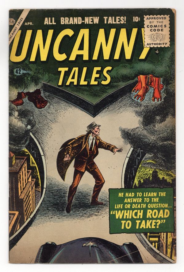 Cover by Carl Burgos. Stories by unknown. Art by Bernie Krigstein, Bernard Baily, Sol Brodsky, Bill Benulis, Bob Forgione, Mort Drucker and unknown. "They Wait Below" with art by Bernie Krigstein - A lighthouse attendant is accosted by Sirens who wish the beacon to remain unlit so passing ships will founder upon the reef, but as he backs away from them, he knocks over a table lamp which starts a fire and warns the ship away. The next day, men who come to investigate tell him he imagined the Sirens, but he points to their footprints in the sand. Also in this issue: "The Mystery of Mercury" with art by Bernard Baily; 2-page text story "The Jackpot"; "The Little Men" with art by Sol Brodsky - An old man creates wooden statues that leprechauns collect; "Which Road to Take!" with art by Bill Benulis - A man driving through backroads finds himself dreaming about coming upon a sorcerer's town and rescuing a captive girl; "Mistaken Identity!" with pencils by Bob Forgione; and "The Telepathic Typewriter" with art by Mort Drucker - A writer buys a magic typewriter that shows a mental vision of the truth of any newspaper story that is typed on it. 32 pages, full color. Cover price $0.10.