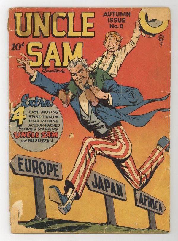 Edited by John Beardsley. Cover by Alex Kotzky. Stories by Ed Dobrotka, Bernard Dibble, Art Seymour, Sid Lazarus, and Robin King. Action packed, patriotic stories starring Uncle Sam, the great American hero in a top hat. 68 pages, full color. $0.10. Cover price $0.10.