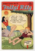 Published Aug 1950 by United Features Syndicate.$70.00Cover by Ernie Bushmiller. Stories and art by Ernie Bushmiller and Raeburn van Buren. The comic-strip adventures of aspiring model Fritzi Ritz and her boyfriend, the bumbling Phil Fumble. Fritzi works as an usher for a "follies" show, in a strip that showcases Bushmiller's ability to draw beautiful women. Fritzi drinks from the Fountain of Youth and starts growing younger. Bathless Groggins' latest invention is the "super-televisor," a TV that shows images from the past, in an Abbie an' Slats strip with fun art by Raeburn van Buren. Fritzi Ritz; Abbie an' Slats; Stamp Tips; Willie. 32 pages, Full Color. Cover price $0.10.