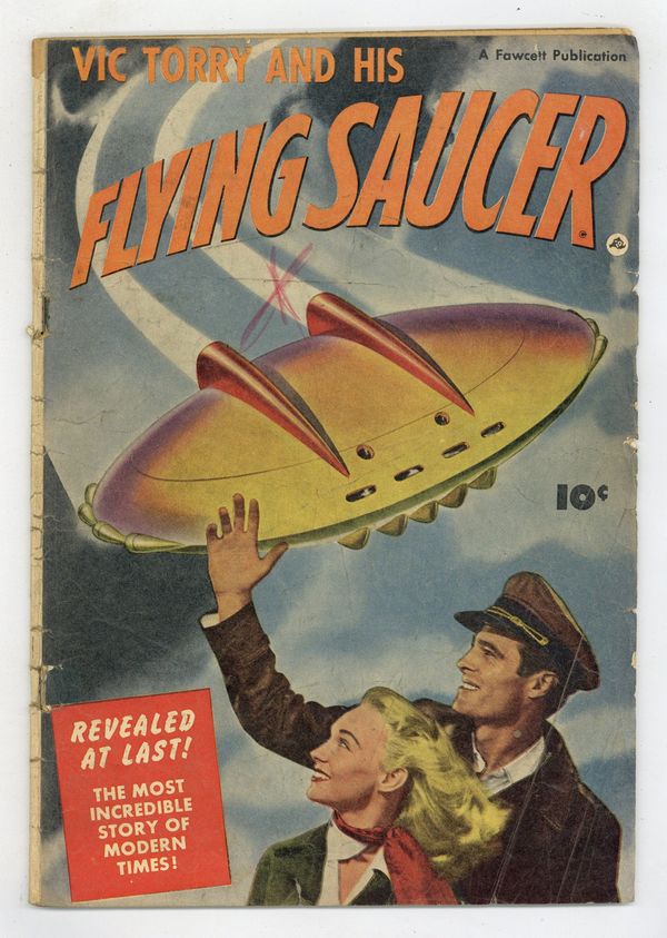 Stories and art by Bob Powell and Wally Wood. A one-shot oddity inspired by the "flying saucer" craze of the mid-20th century. Test pilot Vic Torry discovers a lost alien spacecraft in the juggles of South America, and manages to revive its crew. Luckily for him, they really have come in peace; they want to free humanity from the threat of nuclear warfare, and ask Vic to join them. Pilot Pete: Up in the Air; The Flying Saucer; The Captive Planet; The Evil of Szzz!; Catastrophe!; Pilot Pete: Fast Thinking! 32 pages, Full Color. Cover price $0.10.